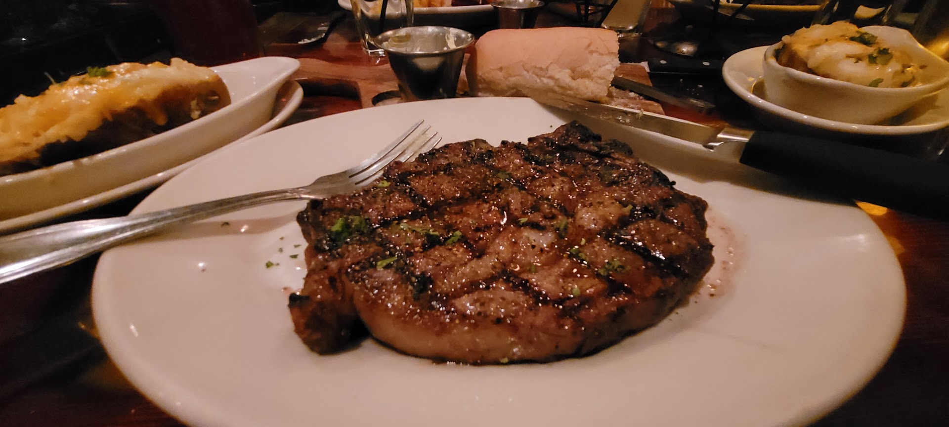 Let me start by saying, the food was very good. The ribeye was better than average. The Lobster tail was good. They have a great salad bar and the items were extremely fresh. The calamari was the best I've had in a ling time anywhere. The shoestring fries and the sweet potato fries were great...and the twice baked potato was very good. The only food complaint was the Tuna sashimi which was not only cooled, but way overcooked. So, since they are required to sear it, it tells me it is not sashimi grade in the first place. 🤔