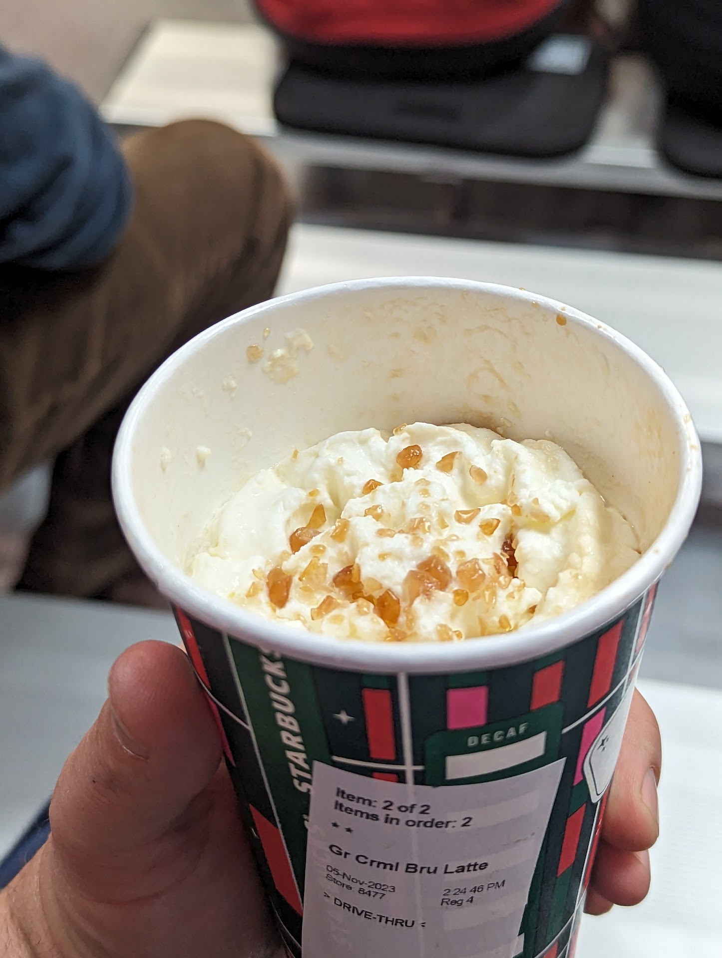 I used to work at Starbucks, so I understand it’s annoying for them to remake a drink and usually I just take the drink if it’s a little off, but these drinks did not taste good at all we couldn’t finish them. When I explained the situation to the person working at the drive-thru, I even prefaced my request by saying, “I’m sorry, I hate to do this, but…” and then asked them to remake the drinks. He told me to come inside for that.