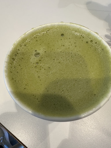 Matcha: delicious. I got it hot with almond milk. They had a lot of pastry options in their case (still even...