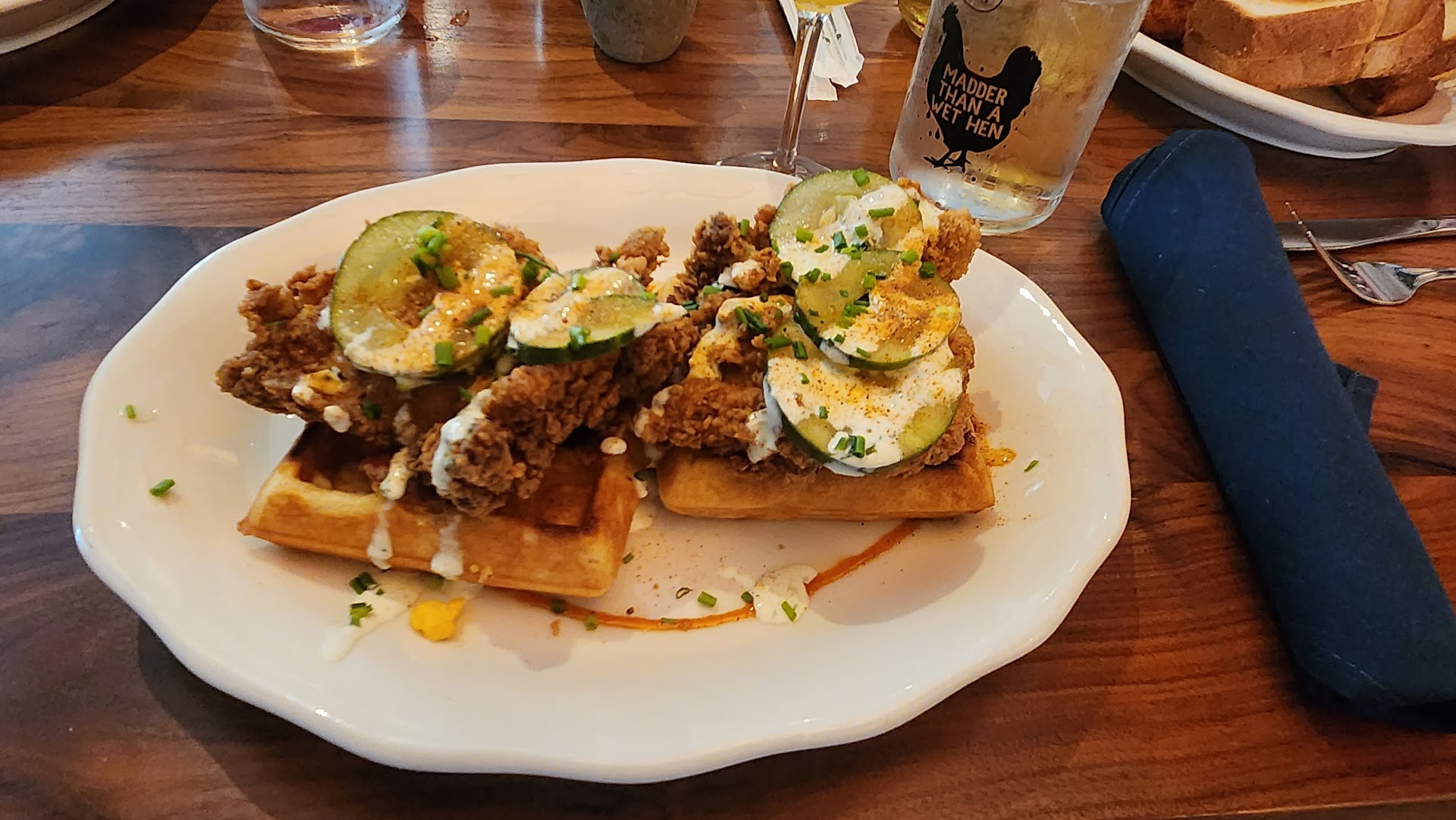 Well, we were excited to try Tupelo Honeys chicken & waffles. Coming up from Atlanta for a wedding and use to Chicken & Waffles restaurants like the Atlanta Breakfast Club. We thought we were in for a treat here in the Franklin area.