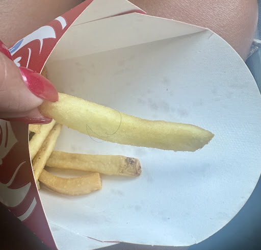 They give me my bag and tell me ketchup is at the bottom. Because they gave me the wrong cup, I checked the bag. It’s a small fry. Clearly irritated, after a couple minutes they give me a large fry.