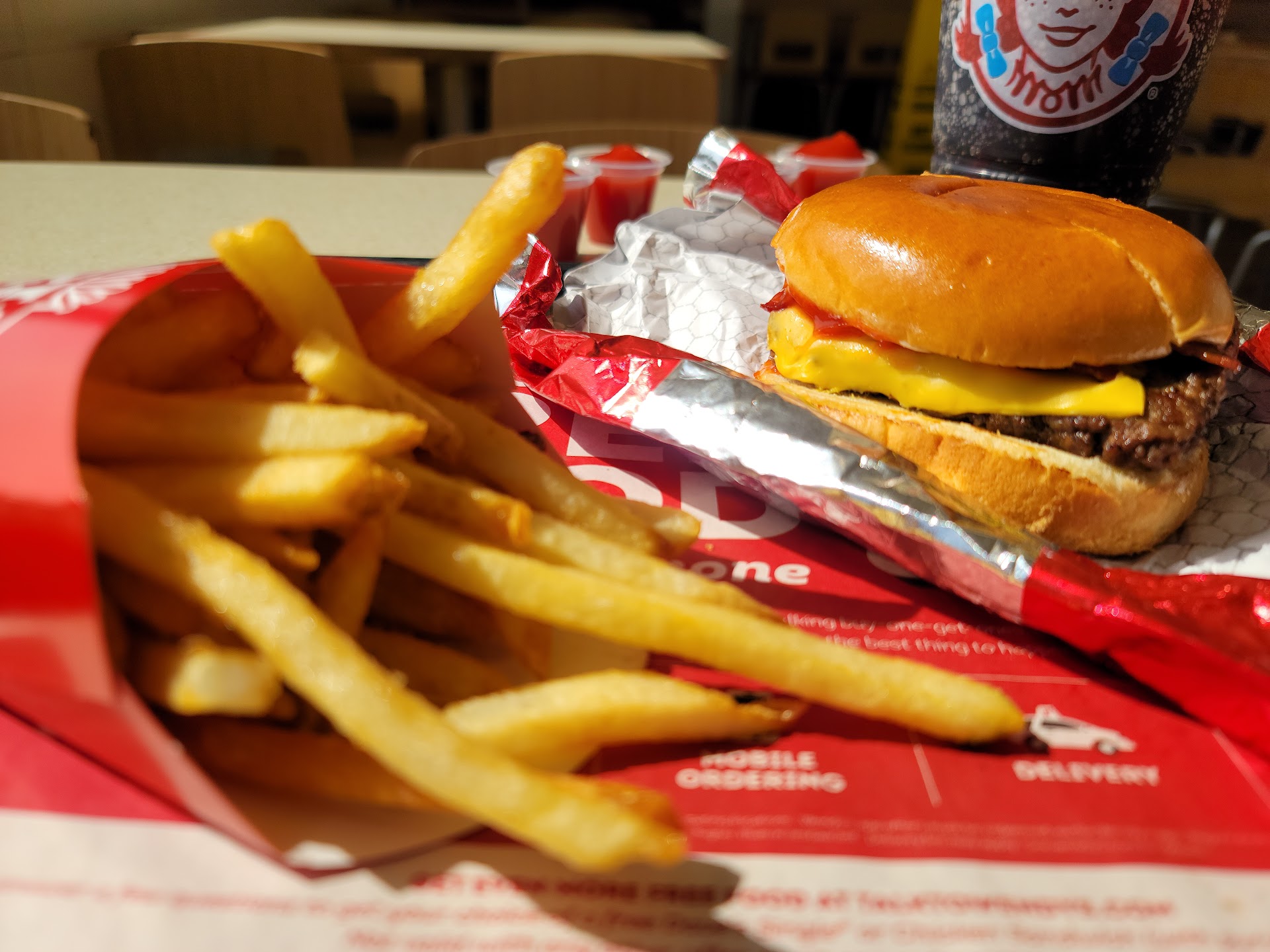 Read moreThis place seems to be suffering from a similar issue as most fast food places right now. Very few patrons are eating inside the restaurants so they are ill prepared for those that do. The service was discombobulated and struggled to work together to serve in a timely fashion. The drink station was not staged well and I had to search for straws. The place was clean enough but didn't feel like a place that I wanted to spend any extra time in. Update 12/18/22: They seem to be doing much better this time. The place was much cleaner and even busier. The food was a little slow but definitely good. The hot red head that seemed to be a manager was running a tight ship. At one point my tray was waiting on fries and she said to another employee, "stop running your mouth and finish this order." And the whole time she never stopped moving around the fryer area and prep area. Wendy's has definitely improved since the last time and I recommend this over McDonald's every day...