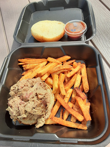 Read moreThe brisket sandwich was tender, juicy, and flavorful. It was perfectly marbled and bites with a little of the fat in them were the most savory. This sandwich had 3 large slices of fresh brisket with two slices of white Texas-style bread. I had it with the house hottest sauce and it was not disappointing. The sauce was a sweet-spicy, almost a habenero taste, but the sweetness was complimentary to the meat and not overwhelming. The pulled pork was scrumptious! Very lean and moist on a standard burger bun and my partner had it with mild sauce. The sauce was a great compliment to the pork. The Hog Fries (seasoned) were excellent! The rub on them is not too salty and has a subtle hint of sweetness, maybe paprika. Overall, this place is outstanding and the people who run it are amicable and out to please. Definitely stop by and support them if you are...