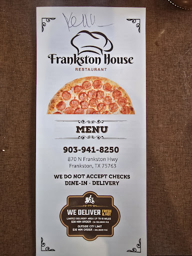 We had the buffet at Frankston House today for lunch. It was delicious. They had fried fish, fries(I think), gravy, mashed potatoes, (maybe fried chicken?), a salad bar, pizza, spaghetti, and alfredo. I didn't try anything but the pizza and noodles this time but they were absolutely delicious. The pizza is excellent. The crust is akin to Schlotzsky's pizza crust, I think it may be sourdough based? Either way, it is tender, light, airy, and perfectly crispy on the bottom. The sauce and toppings were great. The alfredo was absolutely the best that I've had from a buffet, anywhere. It had a lot of flavor and wasn't dry like buffet noodles so often are. The spaghetti was good too. Overall, we were super impressed. The waitress was very friendly and attentive and she answered all of my billions of questions without a hitch.