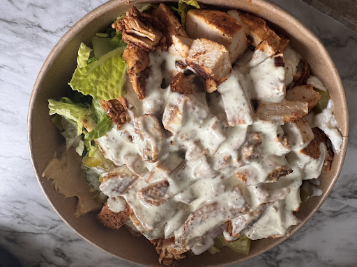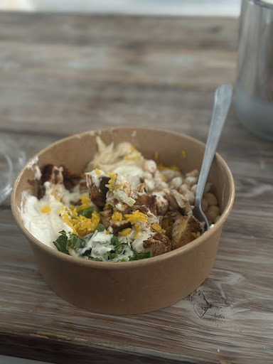 Food Review: The best Mediterranean I've had from the area. Generous portions of everything (2 CHICKEN BREASTS!), everything is cooked fresh right there in front of you basically. All the produce was fresh and delicious and sauces were INSANELY GOOD.