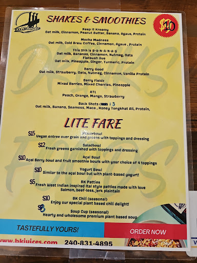 Witnessing the exponential growth on the outside of BK Juices flourishing to what it is now has be the the up most inspiring thing for not just entrepreneurs like myself but anyone that is looking to live a healthy lifestyle. And to top it off yall are also implementing culture of unity within spaces that may have not been catered to or looked at. I applaud the owners and everyone involved in the build and expansion of BK Juices. Even though I had moved, just know! that i'll be ordering to ship or coming back into town to get me some juice! cause truly no one, does it like y'all. Peace...