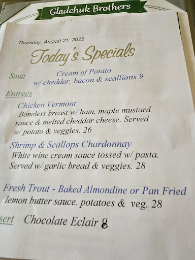 Read moreMarch 7, 2025 - Looking for a quiet âtop notchâ casual dining experience, Gladchuk Brothers provides QUALITY food for almost 40 years !
