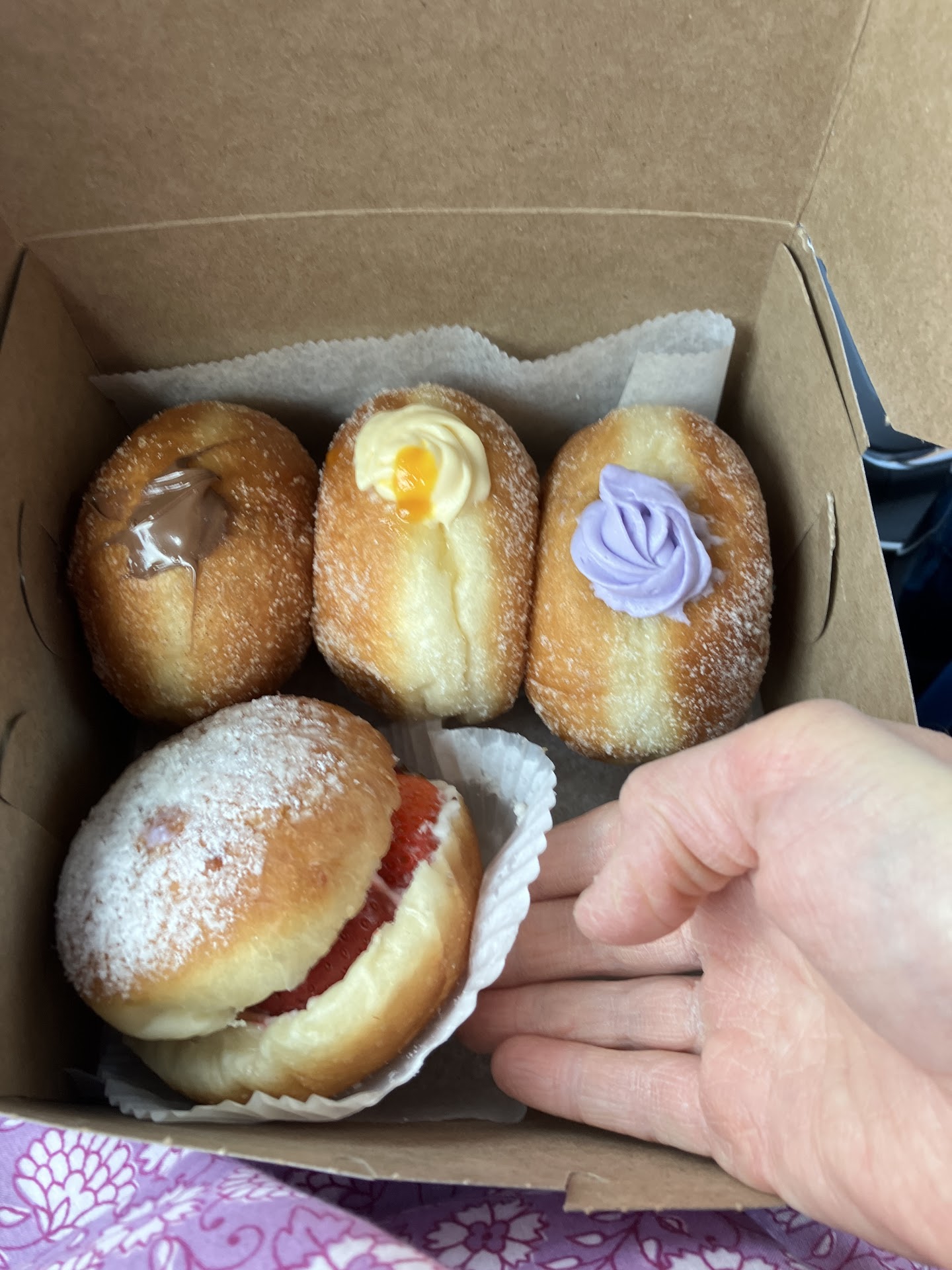Ā Ā Ā Read moreI found this place by accident, but was not disappointed. We tried the Ube, mango, and Nutella donuts. They were fresh and had a wonderful light, chewy texture. We enjoyed the Ube and mango donuts best by far - the Nutella donut was a little heavy for our taste. The strawberry and cream dessert was also fabulous. I look forward to going back and trying something different! Everything was fresh and the staff was very helpful. In fact, when I was taking one of the donuts out, I accidentally dropped it on my tray and smooshed the cream on top. Since I wanted to give the donuts as a gift to my mom, I asked if they could fix it up, and they were more than happy to put another squirt on top to make it look...