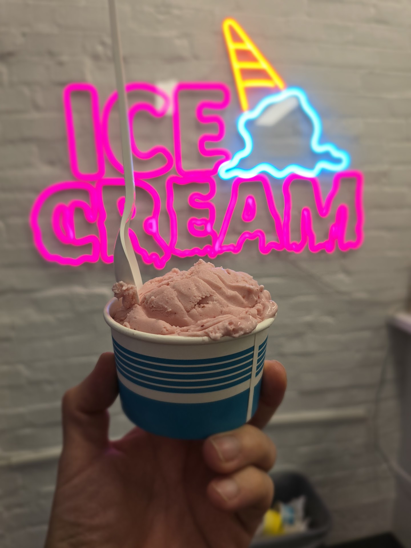 Unfortunately never will come back. Freezer burned flavorless ice cream. Had a not great experience on 4/8 around 7pm. Service was not good. First they didn’t know if they take google pay (they definitely take apple? It is just pay bye phone so it’s a yea by default). We were going to get a cone, but they upcharge a whole dollar for a basic cone that probably cost less than 10 cents for them. Then after deciding on one scope vanilla, he put it in a cup, we ended up wanting two scoops. Apparently he can’t put the extra scoop in the same cup because different cup = different amount of scoops. That means that the scoopage is not correct across the board and you’re paying more for less if you end up getting two scoops (and Litterally what the guy said too). So we went with one since he couldn’t just you know, put one scoop on top of the other … ( we were going to be charged 6$ x 2 rather than 8$ for two scoops). It’s ice cream, how much are you losing for this little difference? Other than a customer… The worst part. The ice cream itself is NOT good. It absolutely was freezer burned. We got vanilla bean and it hardly tasted of anything. Just bean, not vanilla. Afterward all I tasted was freezer. Really had high hopes for this. Left super disappointed with...