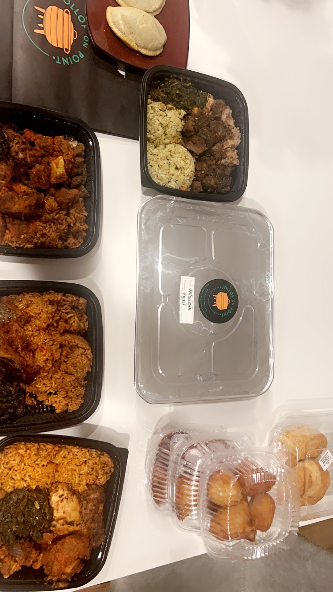 Each experience with Jollof on Point has been excellent! We've tried a large number of the dishes available and everything has been stellar. My personal favorites so far have been the jollof rice, fried rice, jasmine rice with red stew, baked chicken thighs, fried plantains, and meat pie. I don't think I'll be able to go now without getting some of each! The food has been consistently delicious and flavorful! Quite frankly, I can't get enough! I'll also note that both versions of the red stew are fantastic, depending on what your spice tolerance is.