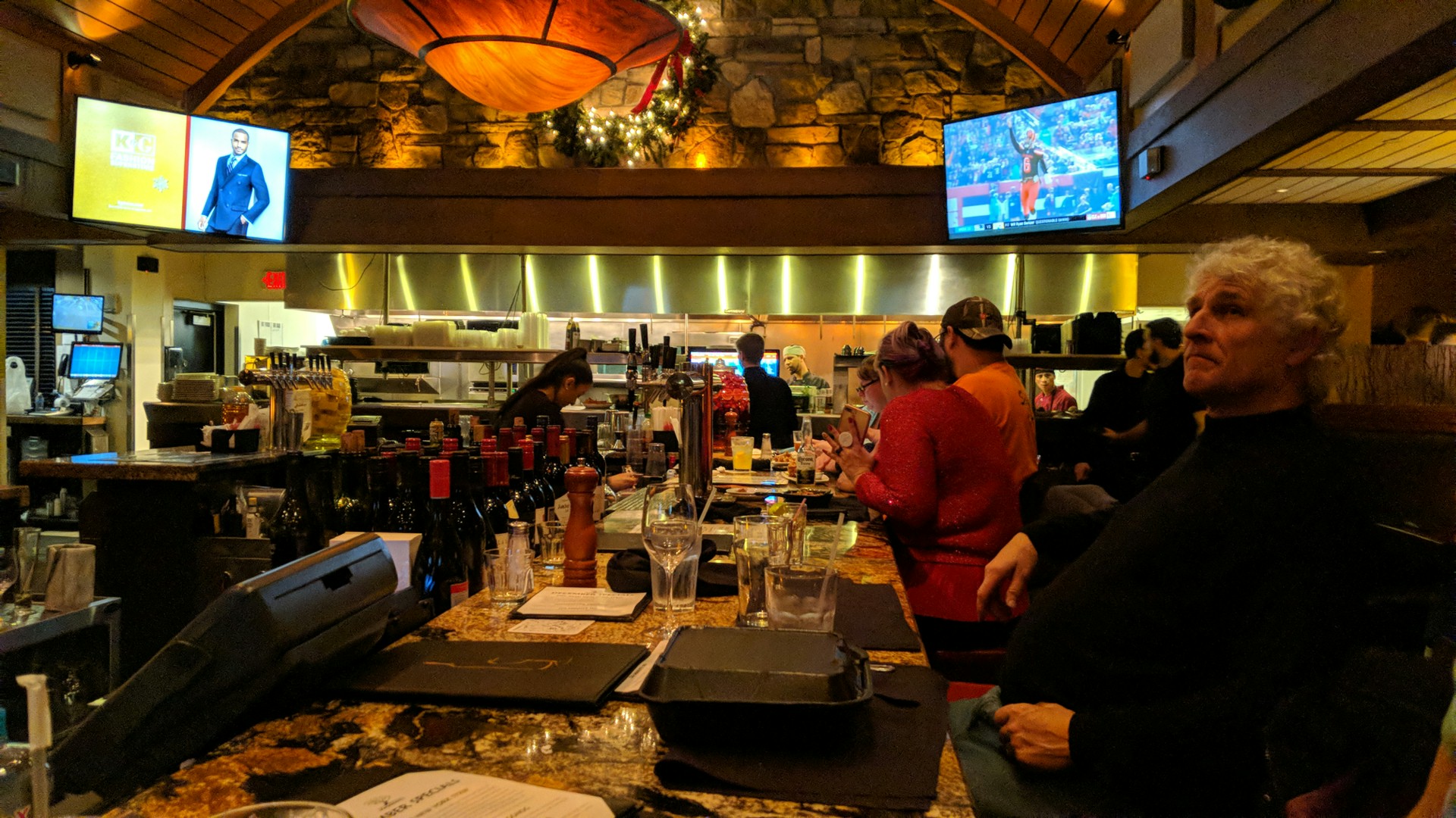 The new girl helping us was the complete opposite. She was super friendly, very helpful, very accommodating. So Kaitlyn did us a favor by replacing herself with this gem, whose name was Adrianna. I held a position client facing for one Fortune 500 company and one Fortune 100 company. For the last 20+ years I did some form of customer service and would never have treated a customer/client the way she did in the short 5 minutes that we dealt with her. I watched her the entire time we were there, over an hour, and while she worked hard by stocking the bar, running around, and servicing other patrons, she was a stick in the mud to most of them. There was only a few chosen sets of people she was actually nice to. She was super happy looking at Holiday cards with her co-workers so she wasn't having a bad night.