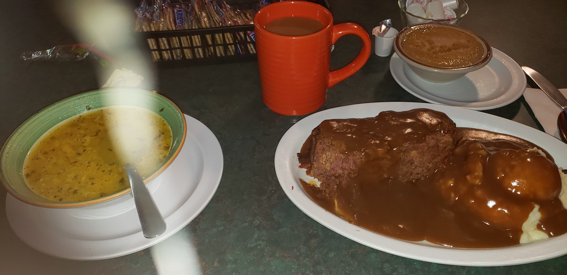 Read moreDo not let the reviews fool you, this is the absolute worst place I've sat down to eat. When you walk through the doors you are greeted by the smell of cigarettes, and a old cigarette dispenser. The booths are hard and the padding is coming off. The cups are probably as old as the place is, you can tell by how chipped and fogy they look. I honestly don't mind drinking from the cup but the condition they were in made me feel sick. Server ignored us when we asked for straws twice before she payed us attention. We were the newbys so I can understand that locals only matter to them, as per the reviews. Food was hot but completely bland. No seasonings at all whatsoever I loaded my plate with salt and pepper. All in all I will never be returning to this place, it was like being in a horror movie. I couldn't wait to leave. Thinking back on it now I probably should have but I was hungry and wanted to see how the chip beef was. Oh and it's CASH ONLY. The server didn't let us know until we noticed at the very end of the meal the small sign covered by decoration. We thought it was an old sign that's why we asked our server. The locals are keeping this place alive but not sure how long the building will be standing before customers...