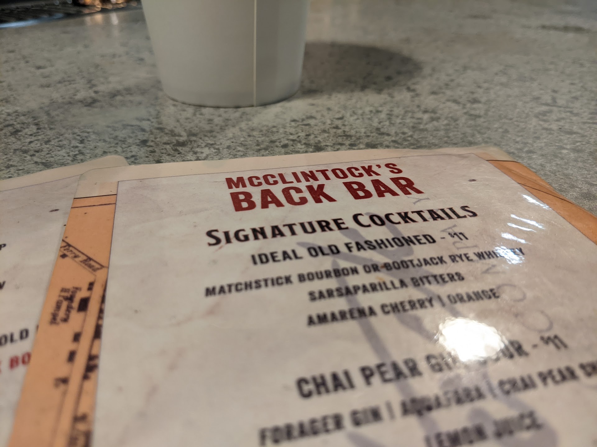 Read moreI really hate leaving a bad review, but last night was not good. Both of us are huge fans of McClintockâs Gin and Vodka. Have made our own martinis with your products. We stopped by to have an after dinner cocktail. We got a regular martini and a dirty martini. They tasted so bad that we paid, left a generous tip and left our 95% full glasses on the bar. You would think the bartender might ask us why we didnât drink it, but she acted like it was perfectly normal to pay without drinking the product! It was just sooo awful. Just a...