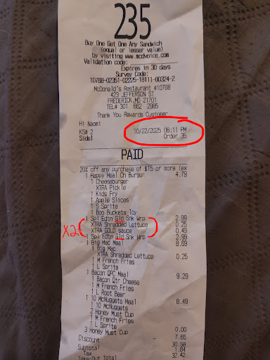Read moreI placed a curbside order and proceeded to park and enter the parking spot number as directed in the app (as I have done many times before). After waiting 20 minutes with receiving my order, I went inside to ask about it. They found it sitting and waiting and immediately blamed me for not "checking in". I explained that I did check in as directed on the app and I expressed that I would like a fresh order. I didn't want food that had been sitting for 20 minutes when I was already there and waiting. The employees argued with me that it was my fault for again "not checking in" (even though I did) and offer some fresh fries instead. Again, I stated that I would like a whole new order since it wasn't my fault that it was sitting there for the past 20 minutes. They eventually took it to the back and brought out my "replacement" order about 5 minutes later. Once I left and tried the food, everything was cold. Not even the fries were fresh. It was a terrible experience, and even after showing and confirming with an employee that I did indeed check in as I was supposed to, they didn't even bother...