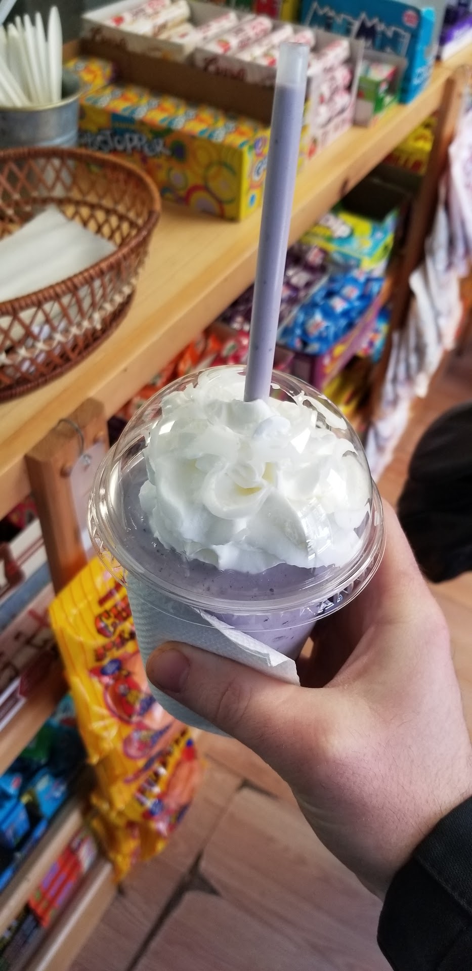 Read moreWe visited during the Fire & Ice Festival, so I can't speak to how it normally is, but they handled us without much delay and were friendly. My wife and I got milkshakes, her's was vegan with vegan oat milk whipped cream. We aggreed that both were good but not as punchy a flavor as we've had in the past. Not sure exactly what it was, maybe lower cream content than other brands. They use local ice cream. I got blueberry cheesecake, which was a nice flavor, just kind of mild and not as sugary as I normally have had. Massive selection of sodas, lots of weird ones, and tons of candies you've never seen. Very cool place, felt like a...