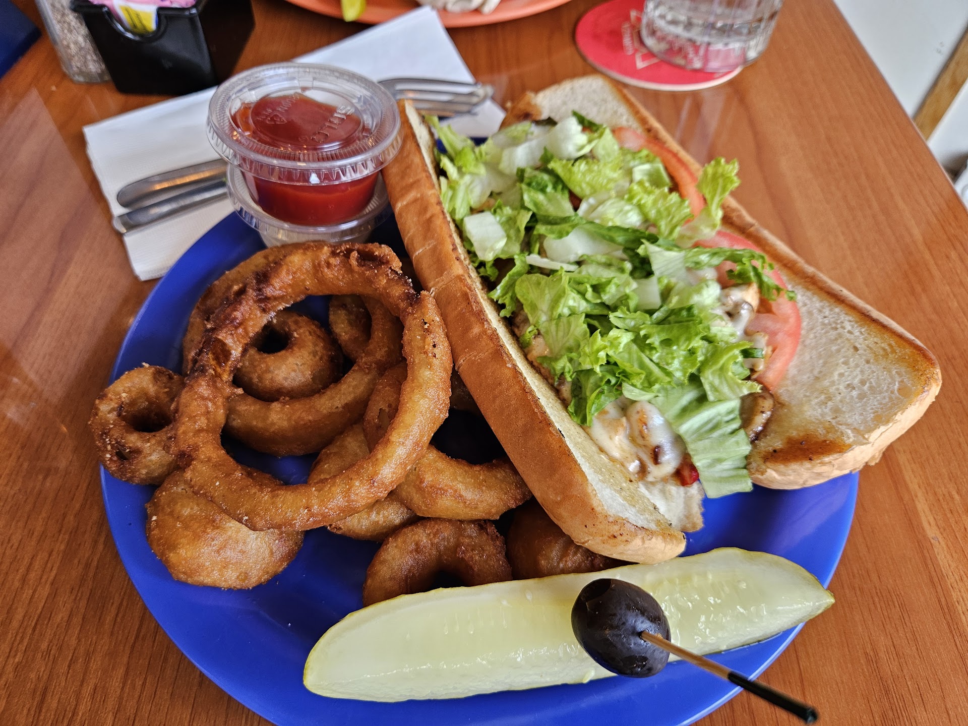 Read moreSo the beer app untapped classifies this place as a dive bar 😂.... Seems to be pretty accurate I'd say 😂... So look if you want to stop in grab a quick beer and a bite to eat it ain't too bad and served its purpose. Can't say it had a wide selection of beer it seemed like most of the patrons were requesting mixed drinks. This place had what I would say the good and the bad side.... The good side was an almost Cheers-like atmosphere we're about half the patrons seem to be acquainted with each other or knew each other and called them by name.... On the bad side I'd have to say for 2:00 p.m. on a Saturday afternoon there are several people who were obviously drunk on their feet slurring their words.. And speaking of words two people in particular could not help but dropping the f-bomb every third word out of their mouth for 20 minutes straight 😂😂😂 Amusing for a while but annoying after 20 minutes.... We each got the special for lunch and I had a draft Blue Moon with tip just a little over 30 bucks so as far as the pricing...