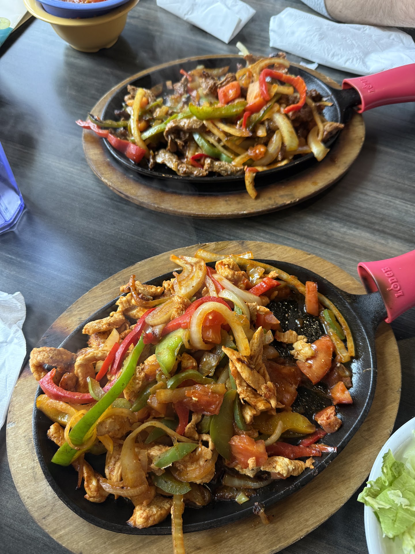 Start you off with salsa and chips - really good and if you want more they’ll give it free. We ended up with so much chips to take home. Salsa was nice, mild, lots of tomatoes juice but it still stuck on the chip. Some heat to it after you have a few. Our table got one chicken fajita and one steak fajita. Both come with tortillas, lettuce, sour cream, guacamole, tomatoes, beans and rice. Guacamole was especially good. Both fajitas came with plenty of vegetables which were cooked nicely. Everything had proper marks, and came out super hot and sizzling. It has mild, fresh taste without too many spices. It was really easy to eat as there were a million different harsh flavors. Delish! Glad we were...