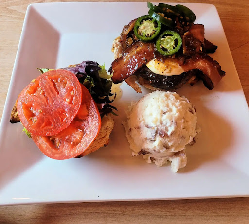 Then everything went downhill from there. Our entrees were absolute ÈhÄ«tĂȘ. Date got an Hawaiian Burger, which contained anemic tomatoes and pineapple from a can. The burger itself was cooked within an inch of its life, then another inch and a half. The tiny ice-cream-scoop full of lumpy, completely unseasoned potato âmashâ didnât provide any relief.