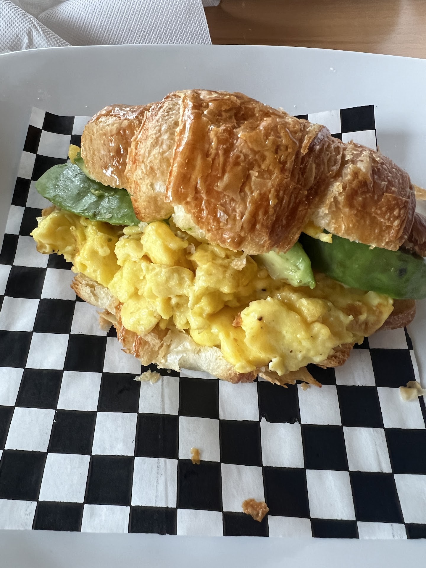 Chicken Egg Cheddar Breakfast Sandwich was served on croissant. It was delicious and satisfying. It was hard to find chicken texture since it was well blended into the egg. Chicken Avocado Melt is a must try. Chipotle aioli was a highlight.