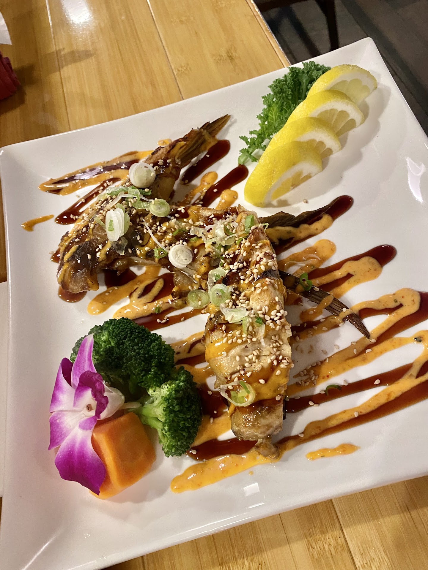 Food: We ordered three appetizers (fried calamari, edamame, and seaweed salad) which took ~15 to 20 minutes to arrive after that order was placed, and came out "piece-meal," (not together). Appetizers tasted good. For our main courses, my wife and son both ordered hot dishes, which are made in the kitchen, while my daughter and I ordered sushi, typically made-to-order at the sushi bar. My sons noodle dish came out first, and we expected the other dishes to arrive right after. Sadly, that’s not what happened. About 10 to 15 minutes after that, and I’m not exaggerating, then my wife’s dish showed up, and she had ordered chicken teriyaki. this dish was served on a sizzling hot skillet, on which you would expect either fajitas or bibimbap to be served. Those of you who experienced myriad East-Asian dishes a fair amount, will know that teriyaki sauce contains a lot of sugar. As soon as the dish was placed in front of my wife, I told her that that the sugar would burn from that blazing hot skillet, and the burnt sugar would not be enjoyable or palatable. Sadly, I was right; replacing her dish with something else would have put us another 20+ minutes away from her eating (she did not say anything about her dish to the owner). About another 10 minutes after my wife’s dish came out, then my daughter sushi was presented, which was as ordered. Another five minutes after her sushi came out then my sushi was served, last.