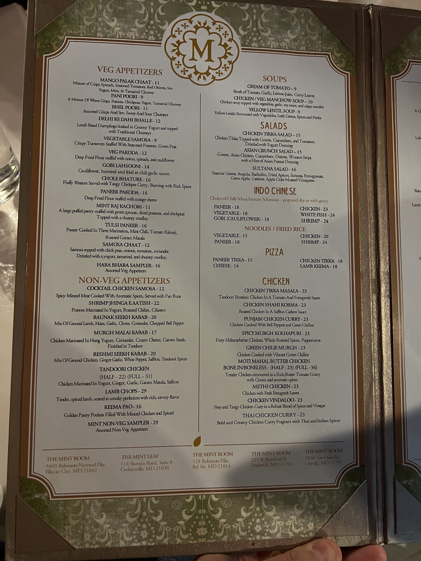 Ambience: nicely designed interior, mostly modern, presumably largely left over from the previous restaurant in that location. It looks like they performed a light remodel. It didn’t really feel like an Indian restaurant at all, which is not necessarily a problem. The comfort level needs some work. definitely some disturbances they need to work on, like a loudly-ringing phone (likely for carry out orders), music turned up a bit too loud, and it was very warm.