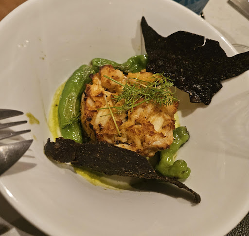 We came in with high expectations, hoping to be wowed. The Voltaggio name, the grandeur of the space, the promise of something special in Frederick’s new high-profile hotel. And for a brief, fleeting moment it seemed like that promise might be fulfilled. The hotel buzzes with energy. Outside the dining room, guests fill the hall and lounges. Just inside, the bar is packed (on the weekend evening of this visit). The dining room is architecturally unique, as noted in innumerable reports, though with a bare, austere aesthetic. Surprisingly loud and stark, the room lacks warmth, elegance, or coziness, with bare white walls and minimalist furnishings that neither soften the edges nor dampen the noise level. If you’re here for a quiet romantic dinner, you’re starting from behind. Wye Oak Tavern's food can be very good. The highs were exceptional. The Maryland crab cake is lush, meaty, perfectly seasoned. Packed with sweet, high-quality crab, accented by the bright, salty interplay of shishito and lime crema. It is balanced and thoughtful, a dish to savor. The cheese ravioli is impressive, too – a dish as bold in presentation as it is in flavor. Zebra-striped with a truffle sauce and grated truffle, and filled with a rich, creamy robiola bosina, it presents layers of umami from black truffle and pecorino. This is a dish with personality, flair. Then, the entrees arrived. And disappointment set in. Rockfish – The fish was tender, and the cioppino broth fantastic—vibrant and complex—but there wasn’t nearly enough of the broth, leaving us to search for every last bit. And the hushpuppies were dry, hard, mealy little pucks, with none of the crisp, golden indulgence they should have brought to the dish. Cedar Plank Salmon – The greatest disappointment. Notably, this dish was not served on the cedar plank on which it was presumably cooked, nor was the cedar preparation detectable. Instead, the bland farm-raised (we were informed) salmon was served plated and completely covered by an enormous soft, moist, thin (and equally flavorless) noodle-like sheet that the menu calls a “scallion pancake.” This is a dish devoid of seasoning and a point of view. Rigatoni – The biggest problem is the sauce, described on the menu as an “arrabbiata.” At a minimum, arrabbiata should have some kick. This one had none of the bold fire of an arrabbiata. This sauce was vaguely sweet, orange and creamy (from its brown butter and parmesan, presumably). The dish is not helped by woefully soft pasta. All told, the dish is reminiscent of a certain pasta product, still sold in cans brandishing the name of a well-known chef of another era. As we were about to throw in the towel, dessert arrived. Sticky Toffee Pudding – Fantastic! A perfectly executed classic, modernized with pistachios and matcha cream. Deep caramel notes, the warmth of the toffee, the nutty crunch—it was easily the best thing we ate all night. A dessert to be savored, that lingers on your palate, and in your mind, and makes you wish the whole meal had been at this level. Hype Train (Cocktail) – With coconut-washed reposado tequila, banana and espresso liqueurs, fresh espresso, and ancho chile, this drink is inventive, the flavors well-balanced, the execution solid. A smooth, smoky-sweet cocktail that works well as an after-dinner drink. Throughout, the service was spot on. The sommelier, knowledgeable and engaged, knew what to recommend, and provided excellent explanations of suggested pairings, elevating even the weaker dishes. Servers were all pleasant, helpful, and conscientious. This kitchen is clearly capable of thoughtful, perfectly executed dishes. But woefully inconsistent. The potential is undeniable, but the highs are too few and the lows too many and too deep. At these prices ($25 ravioli appetizer, $24 burger, $32 salmon, $16 rigatoni), and with the attention this chef can bring to a new restaurant, there’s no excuse for mediocrity. Wye Oak Tavern should be extraordinary—especially for a restaurant this expensive. Chef Voltaggio, this could and should have been so...