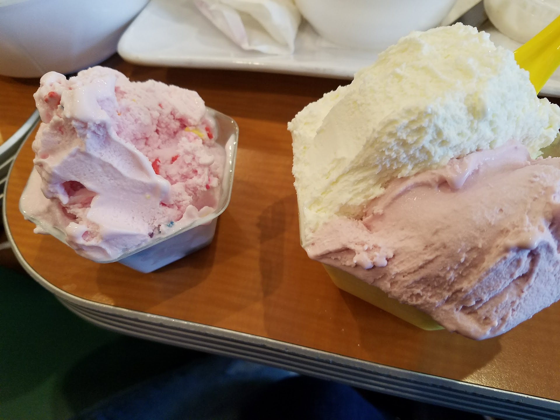 After eating all this food, I got what it simply looks like a giant "ho ho". It has chocolate surrounding whipped cream with a strawberry on top. This thing was amazingly delicious. My little one got some gelato which didn't last long and she...