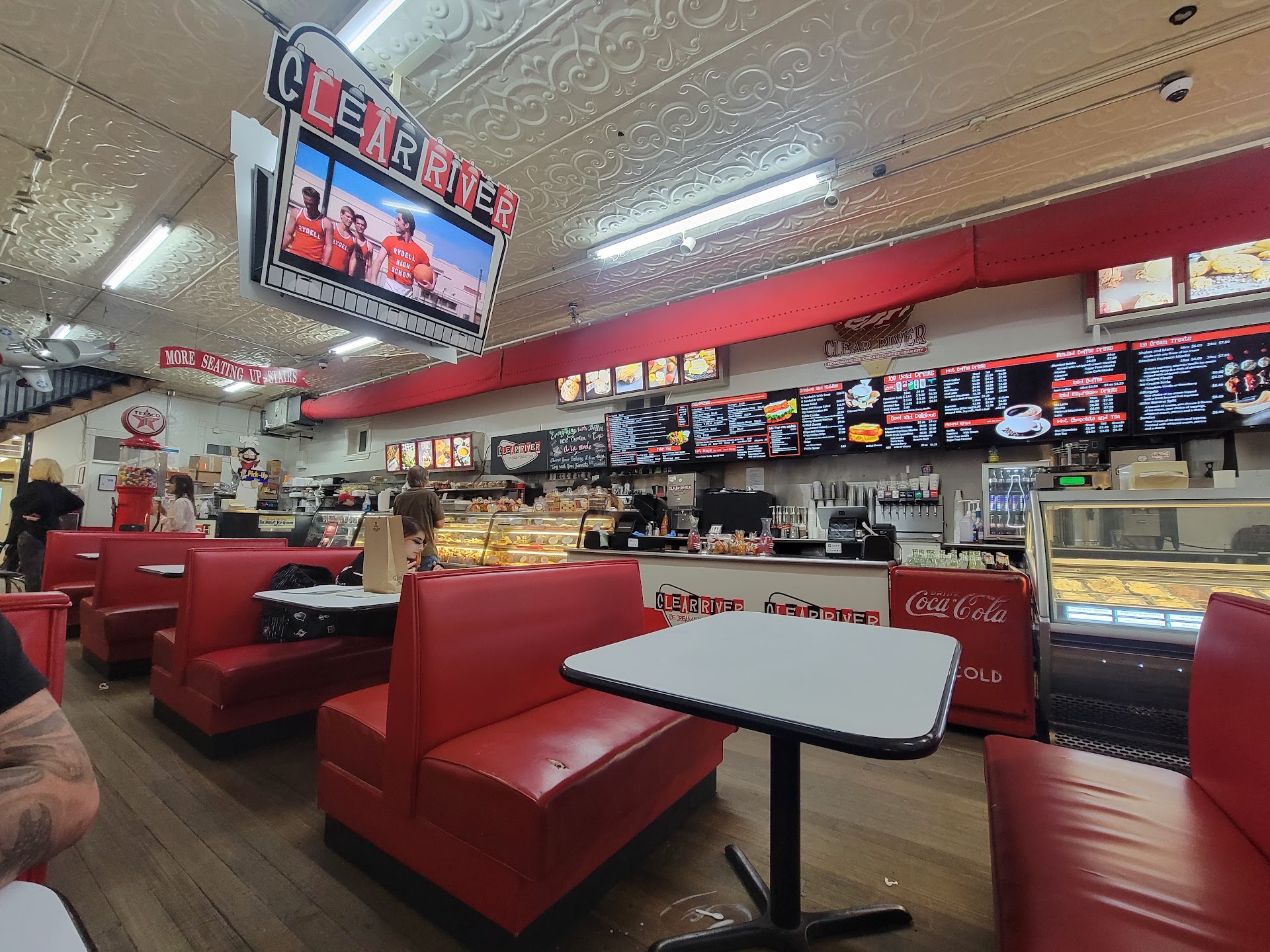 Atmosphere: cute, diner style look with old fashioned decor. Booths inside. It can easily get crowded inside with limited seating. The way the tables and counter is set up feels a bit too close/cluttered to me. I feel like I'm always in someone's way due to the layout. As soon as you walk in, you may be running into someone.