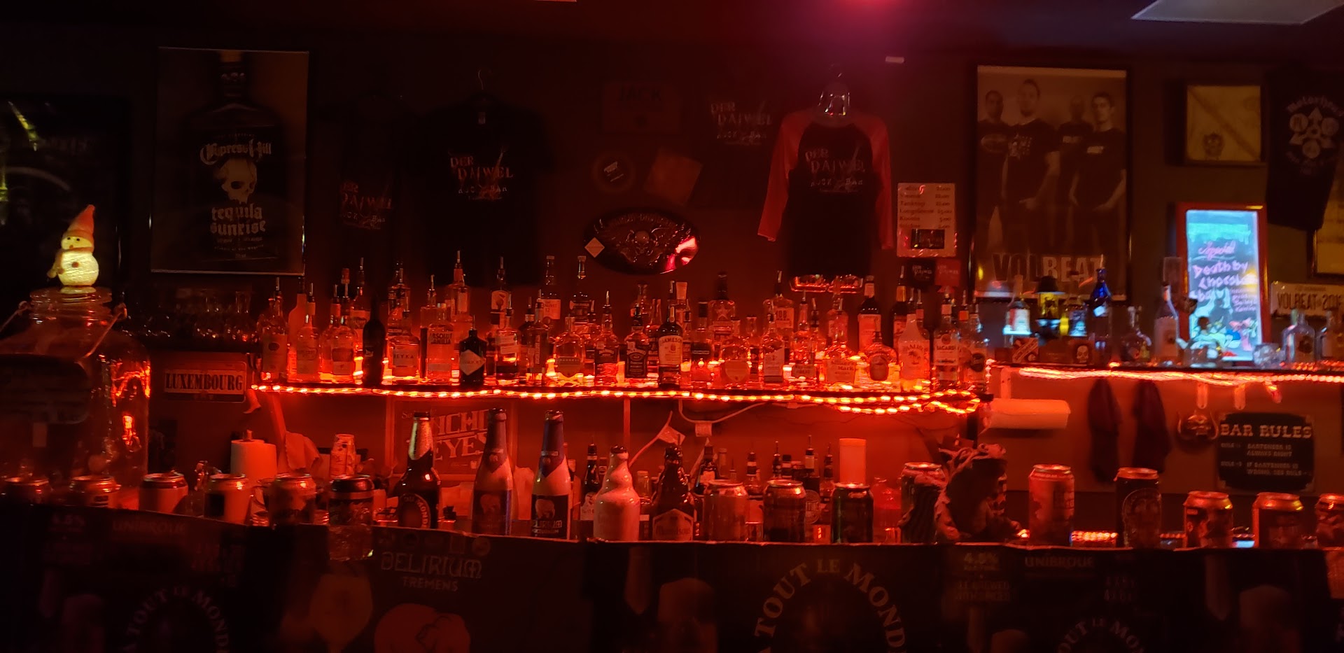 General Impressions: Owned and operated by two metalhead sisters, Der Daiwel (The Devil) is by and for true metal fans. The song selection is varied and excellent - and played at a volume that actually allows you to talk about the music without needing to shout about it. I love a good, skull crushing concert, but when I'm at a bar it's great to be immersed in, not overwhelmed by, the music that you are there to hear. This is a rarity and well appreciated.