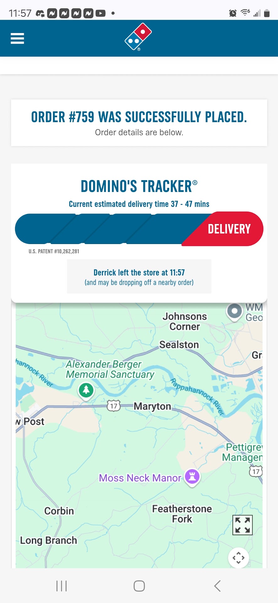 Read moreUPDATE: to 2 stars, just found their "deliver insurance" and submitted a claim... a free pizza. We'll make sure to pick that one up. ORIGINAL REVIEW: I live, no exaggeration, 6 minutes from this Domino's... and yet, they think it makes ANY SENSE to cook my food then, let it sit in the store for "quality check" to then put it in a car with a delivery driver (not her fault, she was super nice) who now has to make a 20 minute detour in the wrong direction to deliver a pizza before mine... only to have the driver literally PASS BY the restaurant (as in actually pass it) to come to my house? My pizza/breadsticks were disgusting, like cheese standing up on its own, cottage cheese consistency, because it's so sadly luke warm... my husband had to heat it up in the oven to make it edible... because... lazy? Delivered after the latest "deliver window" time. Worst $30 I've spent on a single 2-topping pizza and cheese breadsticks ever. If I lived 30 minutes away, the status of my pizza and price would make perfect sense. I used to order often in NC, living 20 away, it was better than this. Also, I called the manager line, it just rang and I left a review...
