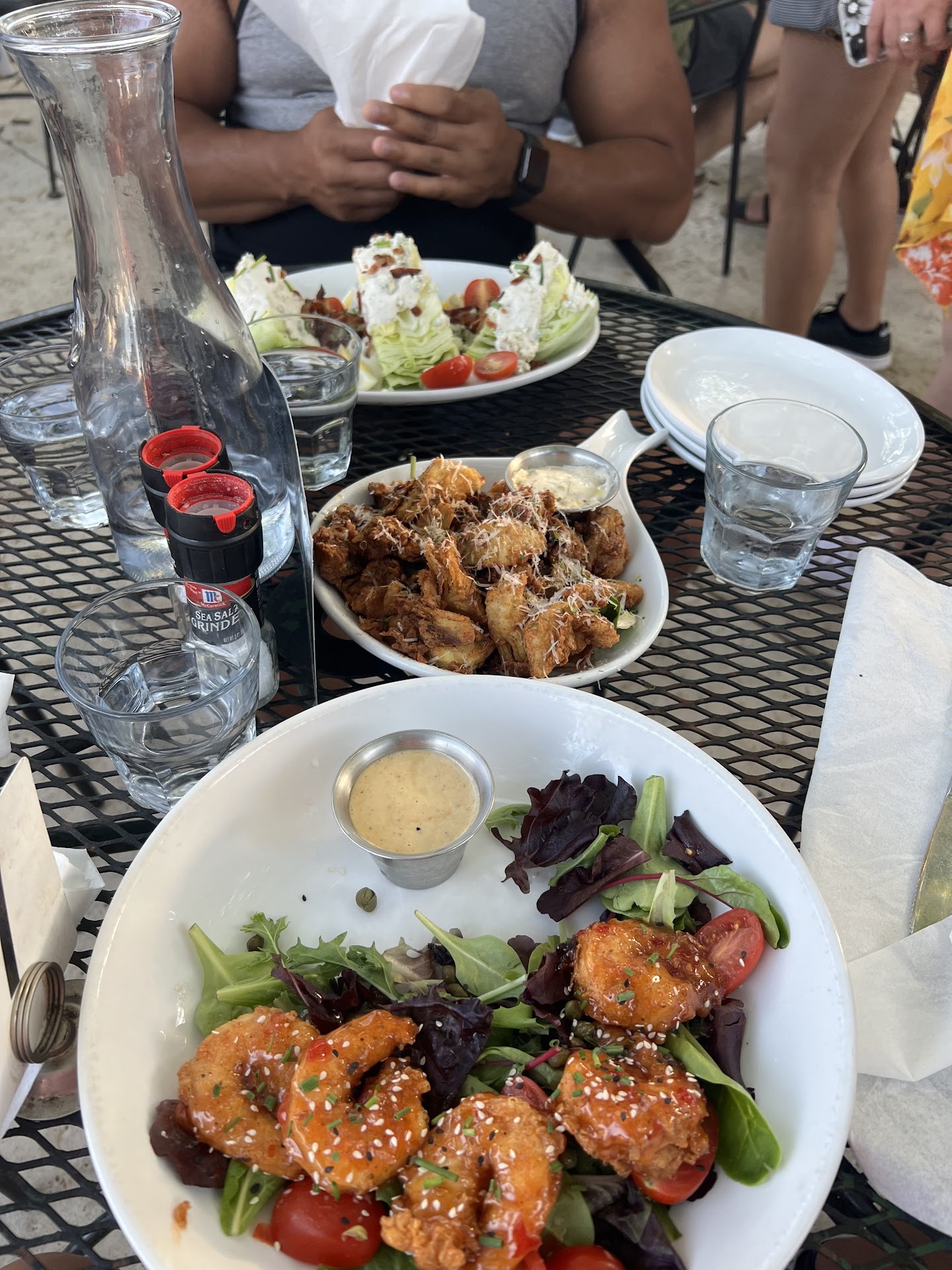 We ordered a couple apps: voodoo shrimp (which resembled the infamous bang bang shrimp). The only negative thing I can say about this was that there was just too few shrimp! The shrimp were crispy despite being lathered in that sweet/savory sauce. Tasted great by themselves and dipped in the accompanying white bbq sauce. I was intrigued by the description because any “white sauce” usually tends to be ranch, but this wasn’t. It was perfect. Also had the oysters Baton Rouge. My goodness they were enjoyable. Perfectly crisp and crunchy. Not to mention the plate was full of them for all to enjoy. The herb butter sauce made for a nice pairing.