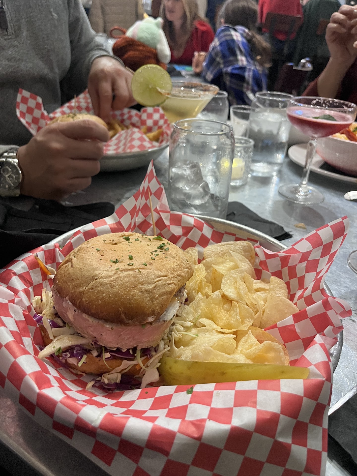 For entrees: the Ahi Tuna Burger was by far one of the best things I have eaten. My wife’s surf and turf was out of this world. If you choose the asparagus as your side, the stalks are thick, tender and seasoned well. Our friends had the shrimp and crab boil with Old Bay seasoning and it was delightful. They got the Cajun seasoning on the side to try, and it does pack a punch. Waitstaff is amazing, decor is great, bathrooms are spacious and clean. Make sure to stop at Martinis when you visit Fredericksburg because you won’t be disappointed. I’m not a fan of waiting long for restaurants, but this place I will. 5 stars all the way - our visit Friday for happy hour was 5 stars and even after we waited about 30 min longer for our table on Sunday evening, 5 stars still was there....