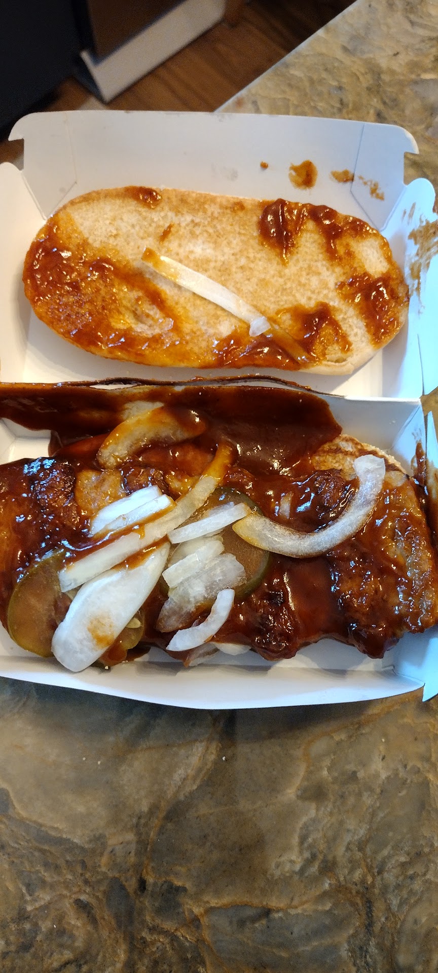 I had to go back . With receipt in hand, I told him I was missing my sandwich for the number 1 but had drink and hash brown. He reviewed the receipt in detail. Wanted to know what I wanted him to do????? Are you kidding me , I wanted this experience to be over !! I told him the #1 sandwich is missing. He just was being rude asking in detail what I wanted on sandwich. I told him no substitutions. We didn’t eat the sandwich because he went to the back it took away for him to grill the team on why it wasn’t in bag.