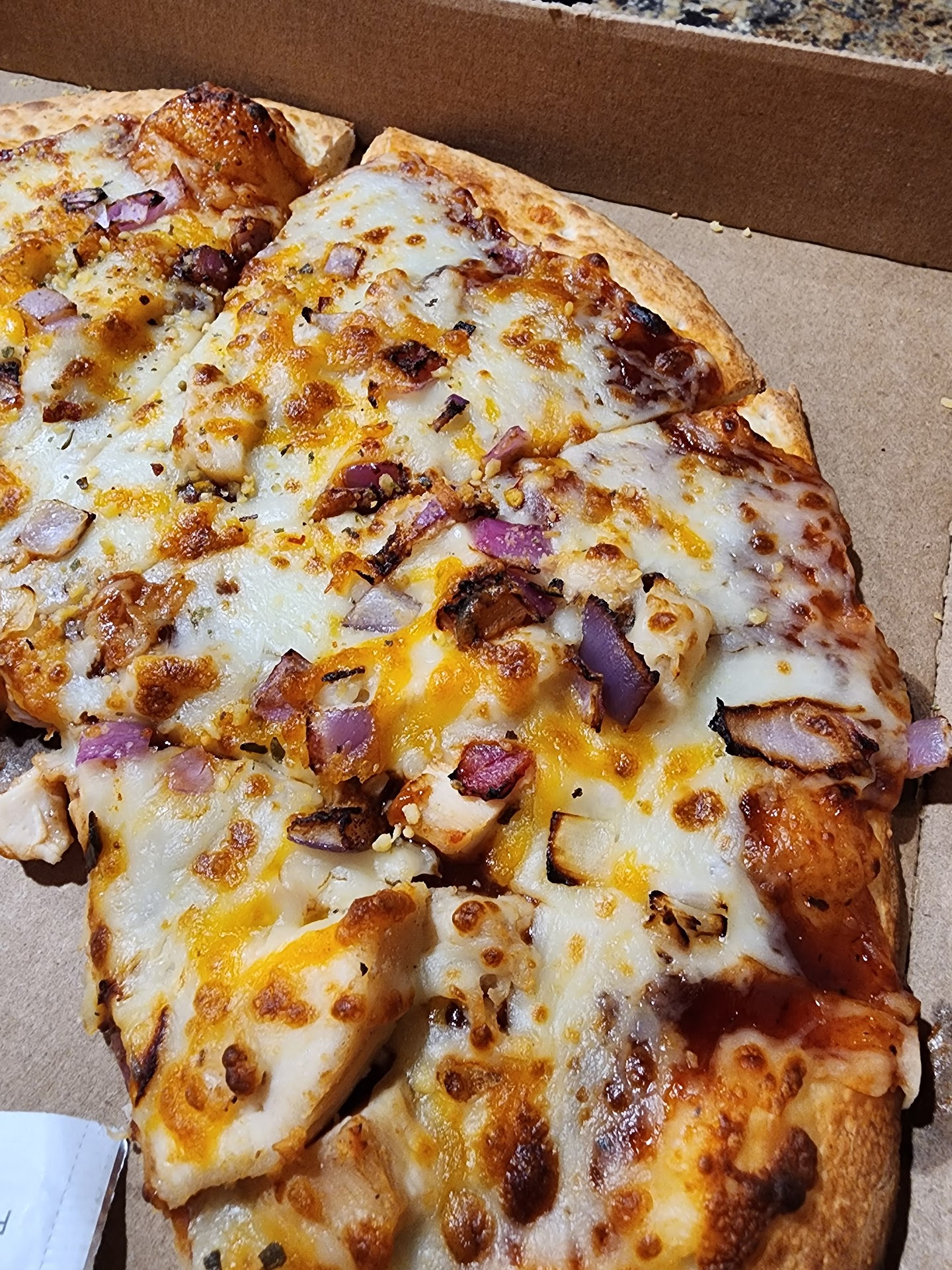 After turning around and going inside, I was greeted kindly and was helped through the menu to grab some takeout. I can get overwhelmed easily, and with her help, I had no problem choosing their BBQ pizza!