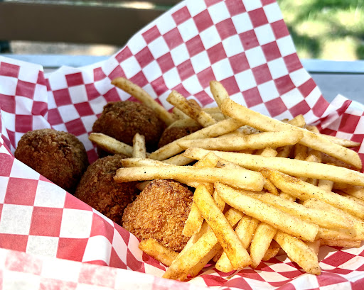 This is a good truck on the property behind Albert Ice House. You can buy beer or wine from ice house and sit with your food from Rex’s at a shady picnic table or Adirondack chairs. No live music during the day but still a nice atmosphere. We ordered boudin balls and a smashburger to split. The balls and sauce were great, but the burger just so-so … on the small side and not very flavorful. Nice little stop off the...