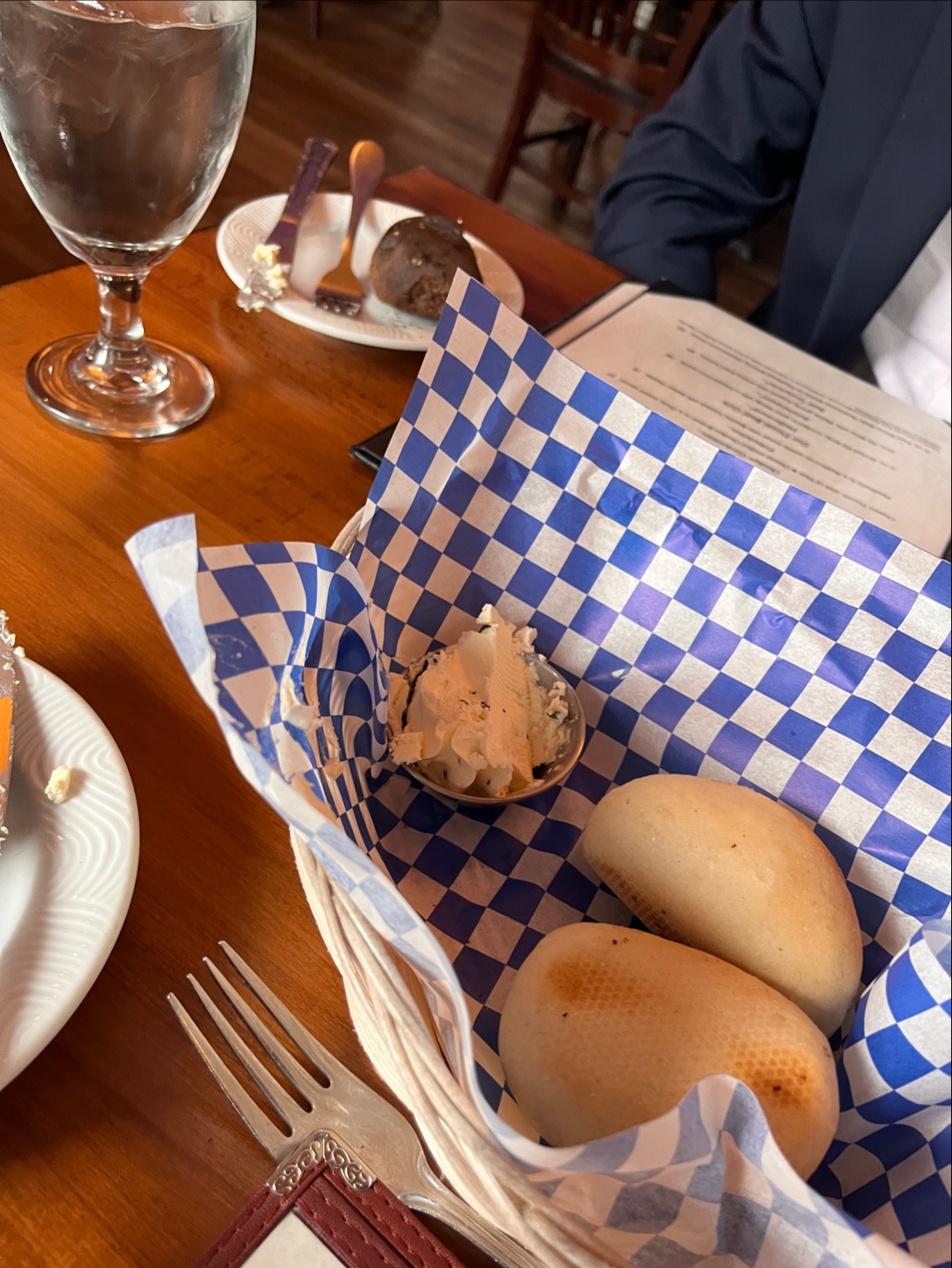 When asked why a dinner roll basket wasn't on our tables, the answer was that "you have to ask for them because most people don't eat them and just leave the rolls due to concerns about glucose." Really?!? I would think that they would ask if we wanted a basket of dinner rolls when seated (plastic dinner roll plate was on the table) rather than to have us ask after wondering where the basket of rolls were. The rolls ended up begin delivered with our meal and without a separate roll knife to spread the butter.