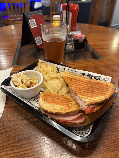 They also have an impressive bourbon selection for anyone who enjoys whiskey. We ordered the ham and cheese panini, which was delicious — it had just a little kick of spice that made it even better.