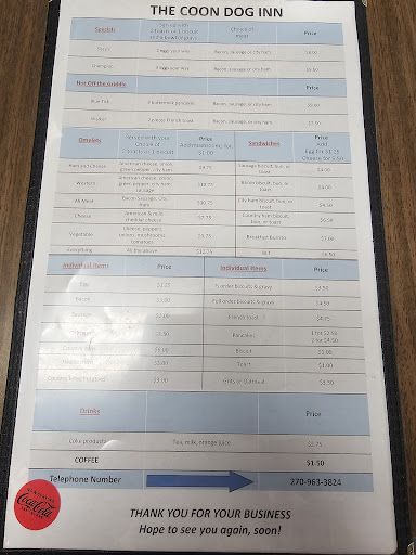 Read moreThe atmosphere is just like Mayberry. You feel as if Andy and Barney should walk in any minute. The food is just as good and down home. It is a nice step back into real cooking. I had the special, beef stroganoff which was made from scratch. It was amazing. I recommend this restaurant before any other in the area. Thank you coon dog for your great effort into putting out a home...