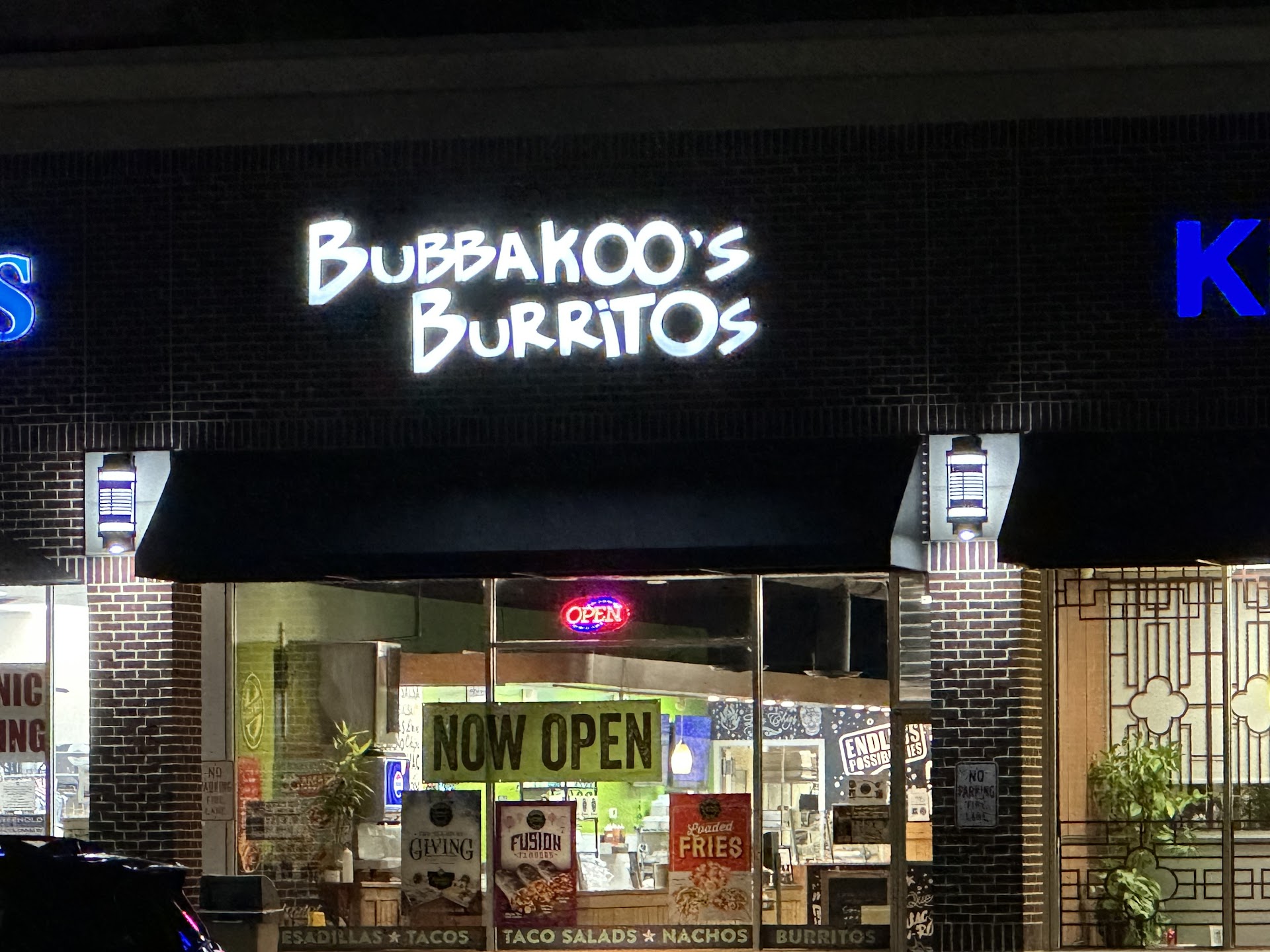 Creepy Uncle Dave here. I visited this place for dinner and I have to say I really like the food here. Bubbakooâs is like an immature Chipotle. Now I know what youâre gonna say, Hey Creepy, what in the hell does that mean. Well Iâll tell ya. Bubbakooâs serves burritos and tacos with a twist. They offer a wide array of sauces and flavors that range from your typical salsa to General Tsoâs sauce to a super hot ghost pepper sauce to add to your burritos or burrito bowls. My boss once said if youâre gonna offer a variety, make it interesting. At the moment the only thing I thought of was the Jolly Rancher variety pack but couldnât make the connection in how that was relevant to what I was selling. So being the advantageous employee I was, I ran to the store and brought the Jolly Rancherâs back and put them on my desk. It didnât help me sell anymore but it did satisfy my sweet tooth. Anyway, Bubbakooâs also offers wings, nachos, French fries, egg rolls and more. Basically, this is not your boring old Chipotle burrito shop(I still like Chipotle though). I come here to spice my burrito bowl up a little bit. This time I ordered a burrito bowl with brown rice, black beans, onions and peppers, shredded chicken, hot salsa, corn salsa, cilantro, sriracha crema, and Nashville hot sauce. It was a gastronomical masterpiece! Iâd order it again but I like to try different sauces and combinations every time I stop in. I love this place and I think you would too. Stop on in. Tell them I sent...