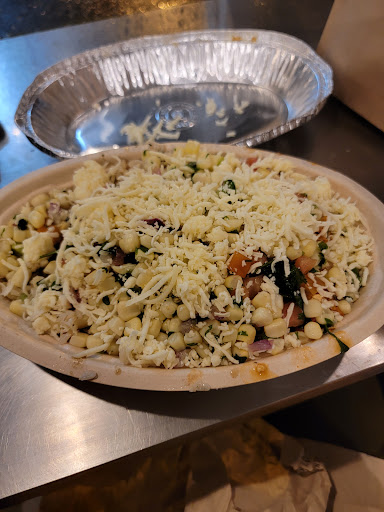 Read moreAs with all Chipotle locations, the food tastes good. Unfortunately there are issues with the service at this location. Last night my daughter and I walked in and there was no line. No one would take our order or even acknowledge us. At first I thought it was because they were preparing online orders. However it turned out that one of the workers was piling a plate of food for himself and making himself a special quesadilla, all while ignoring us. It's funny because I was wondering how so much meat could be piled onto one plate. Finally a female worker came over and asked him what he was doing and he said he was fixing himself some food. She seemed really annoyed at this because he had been ignoring us the whole time, and now there was a long line behind us. I was also surprised to see that they had not been cleaning up the area and there was just food particles everywhere. I would like the manager to know that that girl was working very hard and trying her best to update the old food that was in the bins. It looks like there were a lot of people working, but people mostly just standing around not doing anything. She seemed to be the only one who kept working. Something else that is frustrating about this location is that they don't accept the special coupons or bonuses that you get on the app. I would have to travel at least a 1/2 hour to get to another location to cash in on those freebies. I would eat her more often, but I just get turned off by experiences like this. Even my friends tell me horror stories of waiting two hours for food...