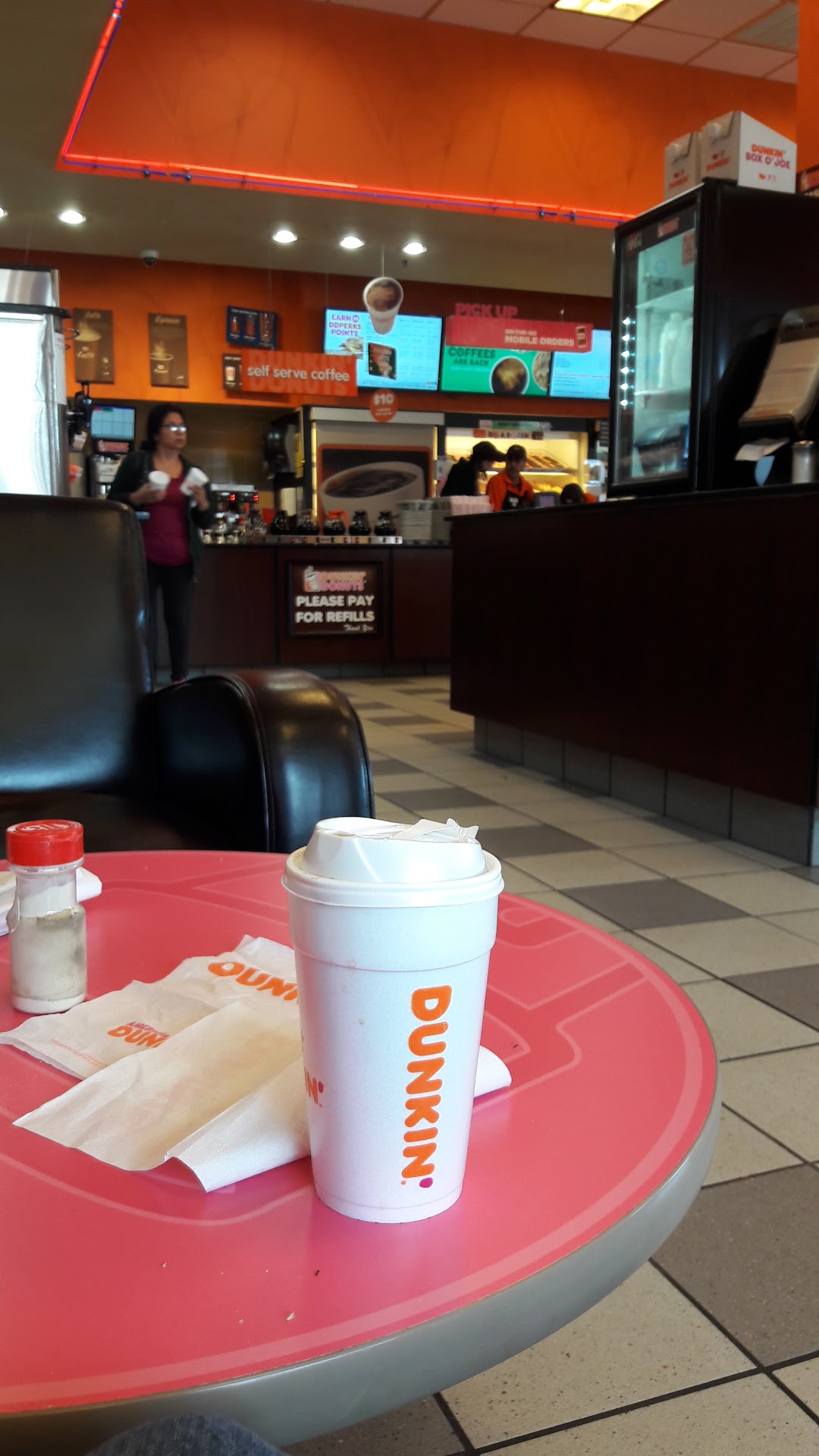 Read moreThis is my local Dunkin' Donuts - I go there all the time. The workers are always fast and courteous. You can have them prepare your coffee or it's self service if you so choose. I enjoy making my own coffee on the inside. They even have a Dunkin' Donits ATM machine, I want one of those, LOL. Yes, I'm a DD fanatic.