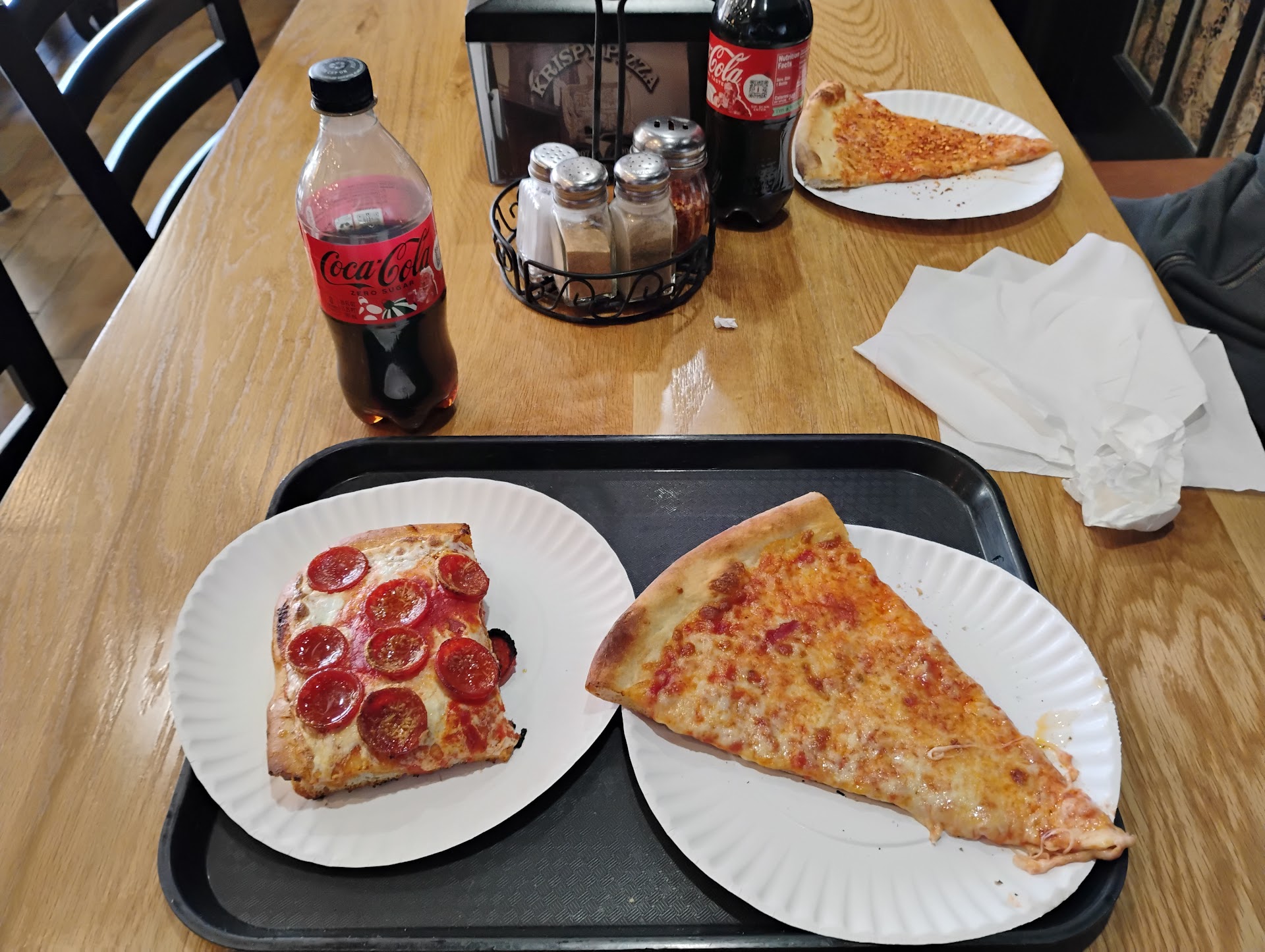 I was. a big fan of Krispys in Brooklyn lived there for over 20 years and moved to NJ the last 5 years. You thought food made by the same family are the same but it seems like brothers have different makes, models and trims but still calls themselves Krispy. I came by to give this place a try to see if the same brooklyn consistency that Freddy's baby is on par. I would say some of the slices that were supposed to be par baked with seeds at Brooklyn and the size of the size was not on par with Freddys slices. I tried my favorite slice, before I did that I looked at it and see if the consistency was about 80% close to Freddys, The sauce and the ingredients were close to on par with Freddys sauce. The only thing I will drop on the rating it is not par baked with no seeds that make this slice what it is supposed to be. I understand some would cut corners but experienced pizza consumers will see how the slice look before purchasing it. It goes with any NJ pizza shop, if the slice looks too much dough or lack of cheese I leave. Also size of the slice is very important as well. It seems like NJ slices are smaller than NY for some odd reasons. I tried others that I normally never try like the tr color slice, it was bad. It came out very dried with lack of sauce and just all dough. That was vey disappointing. The pollo rolls was very good. I give you that. The main ingredients like sauce, cheese and dough...