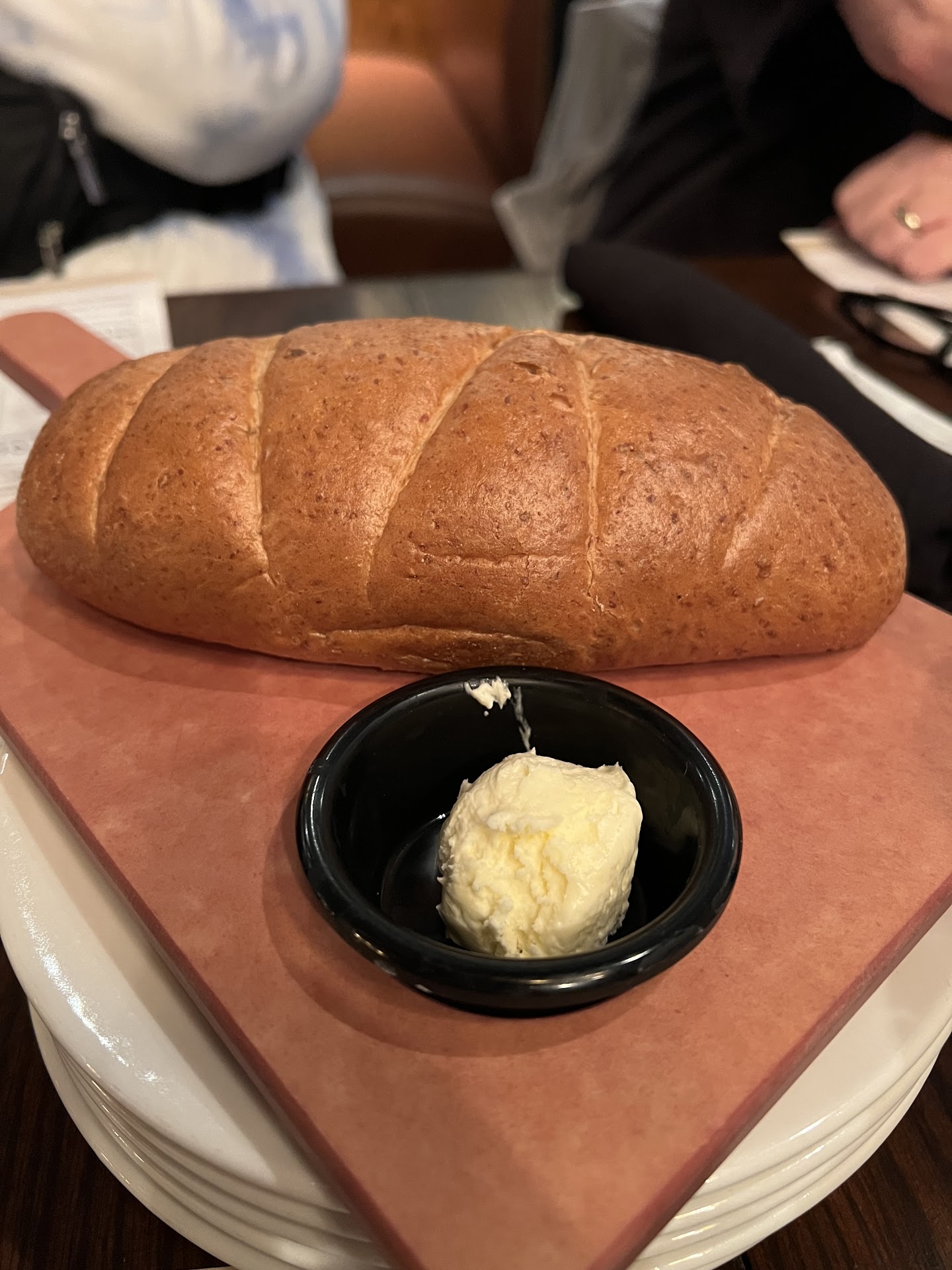 We entertained ourselves with bread and then our salads, and finally our meals arrived. My family members hungrily began eating their steaks, the moment I cut into mine, it was over cooked, Medium well to be exact. I immediately brought this to the attention of our server Ian who promptly went to the back and returned stating they would prepare a new steak for me.