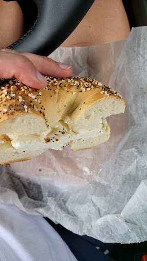 Be warned that the jalapeno cheddar bagel (which is fantastic) has a $1 surcharge over other bagels. However, there is no way to know this until you pay for your order. It is not written on any menus, the display case and they certainly don't tell you while ordering. I was just shocked when I got a bill for $9 and change for two bagels with cream cheese and no coffee. It seemed excessive.