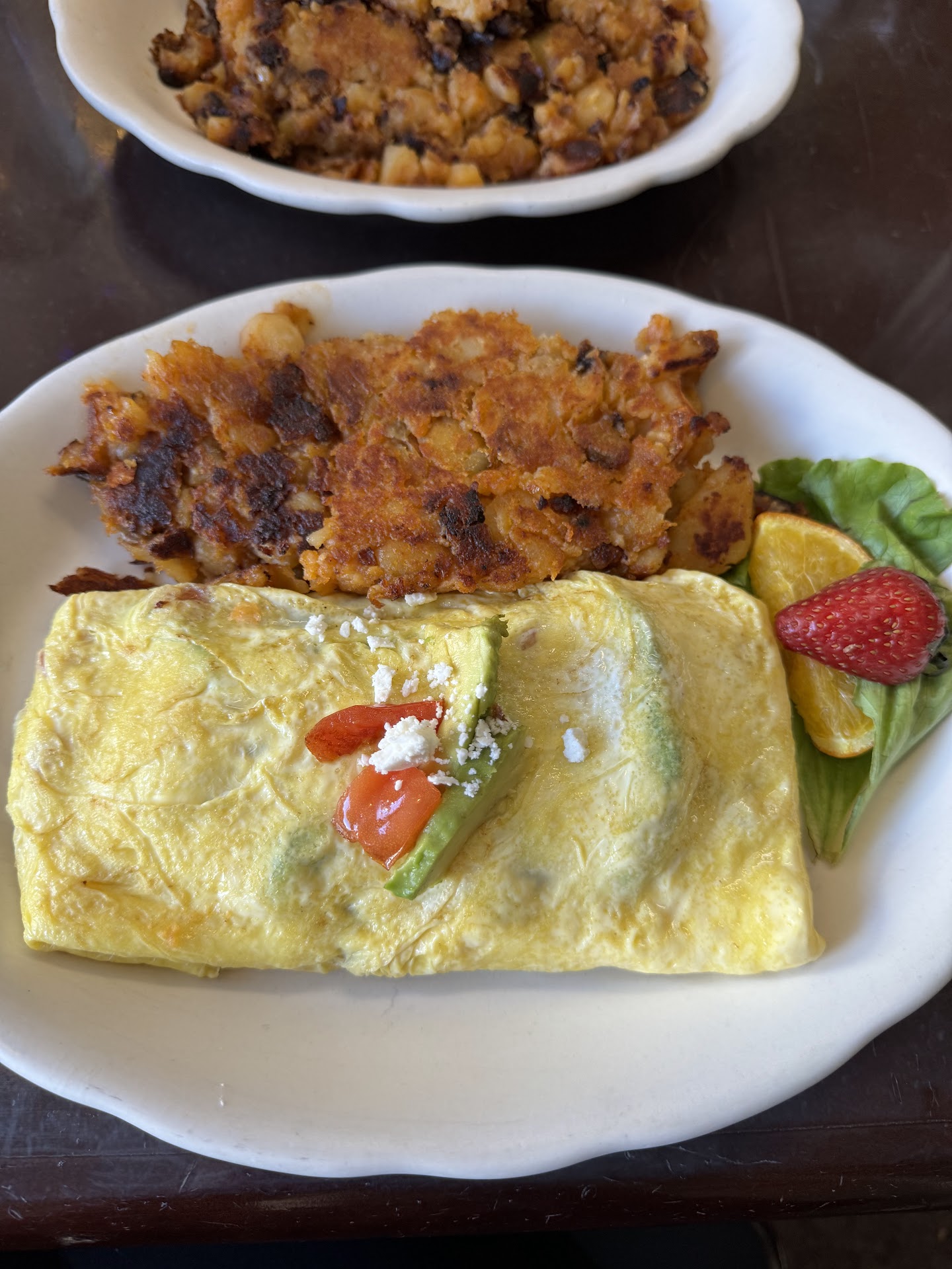 Read moreCame here last Sunday for breakfast with my son. They were extremely busy and unfortunately under staffed. We didn't wait long to be seated maybe 5-10 minutes and where attended to quickly. We waited an average time for our food how ever not everything we ordered came out with the food and it took me getting someone else who worked there to get me the rest of my meal. My son ordered pancakes which he liked. I ordered a mushroom and onion cheese omelette with sides of turkey sausage and turkey bacon. My omelette was supposed to come with home fries that never came after asking my waitress for them and being two bites from being done with my meal I reached out to another waitress possibly a manager or owner who immediately brought me my home fries, also when my waitress brought out my food initially I had finished my cranberry juice and asked for an orange juice which didn't come out until I was done with my meal. I thought it wasn't smart of my waitress to not acknowledge any of this as well by not apologizing for never bringing out the rest of my meal and taking forever to bring me a drink. My food was tasty but nothing amazing and it was a pretty skimpy meal , the omelette was pretty thin with not many veggies on the inside....