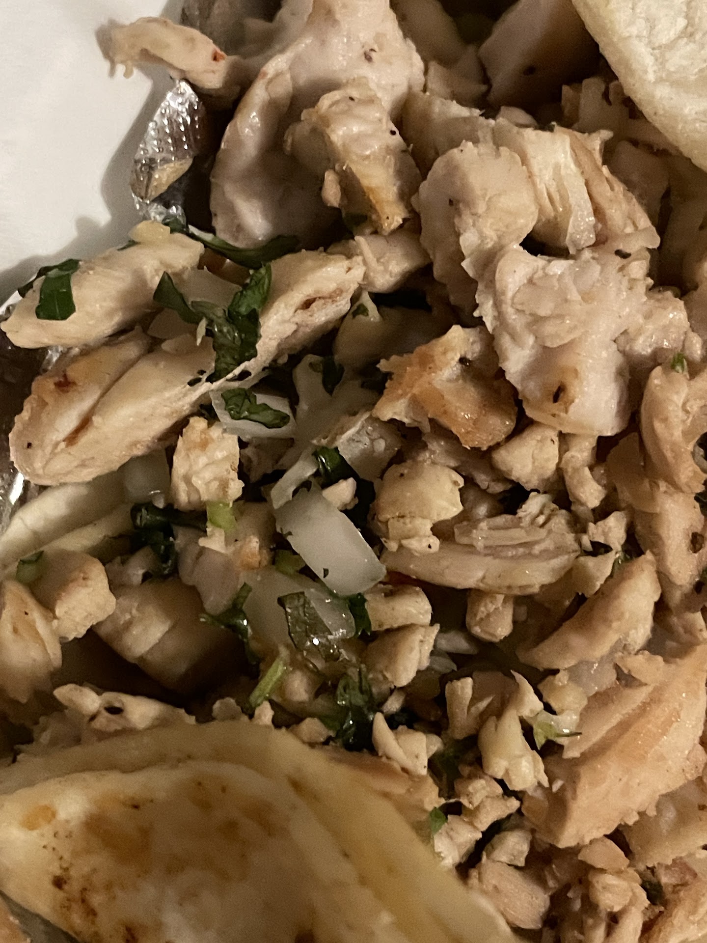 Read moreThe chicken tacos were incredibly bland. For takeout it's served as 6 soft shells with a pile of borderline unseasoned chicken on top. No pico de gallo, no cheese, no veggies or toppings whatsoever, and just a cup of forgettable salsa on the side.