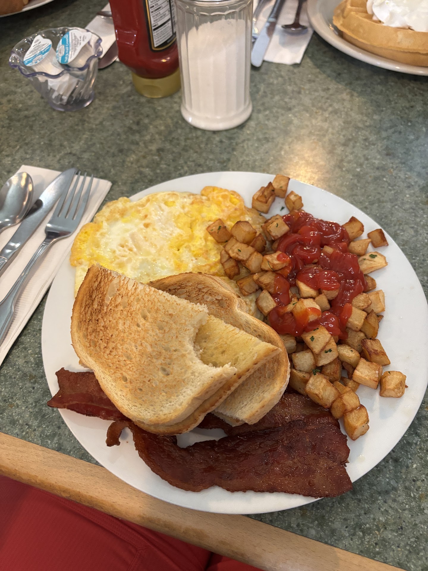 My husband had been on my case about trying it for breakfast, and I finally gave in. Turns out, this place is way better than I expected. I had it in my head that it was some kind of tourist trap because of the location, but nope. It actually gives off super local vibes, and the food was REALLY good.