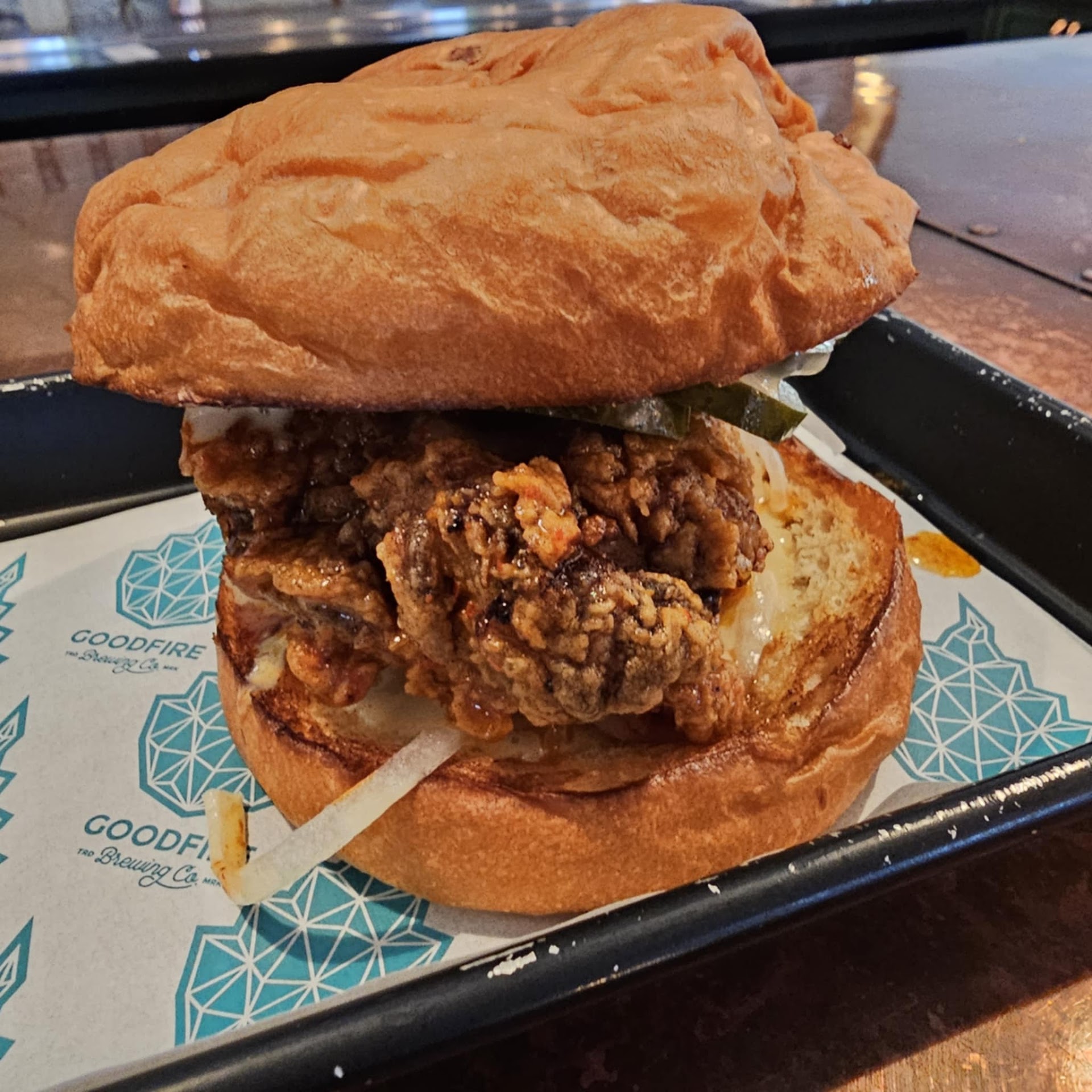 All that being said, the food was great. The Chicago dog was LIT. My wife got the hot chicken burger which was also phenomenal. My daughter got the chicken nuggets which Iām assuming are home made. Probably the best nuggets Iāve ever had. My son got a burger which was promptly inhaled. My wife and I split the spicy cucumber salad. I didnāt think it was spicy at all but the flavor really was top notch. We also got the cheese appetizer. The crackers that came with it will be recreated at home. The cheese was fire.