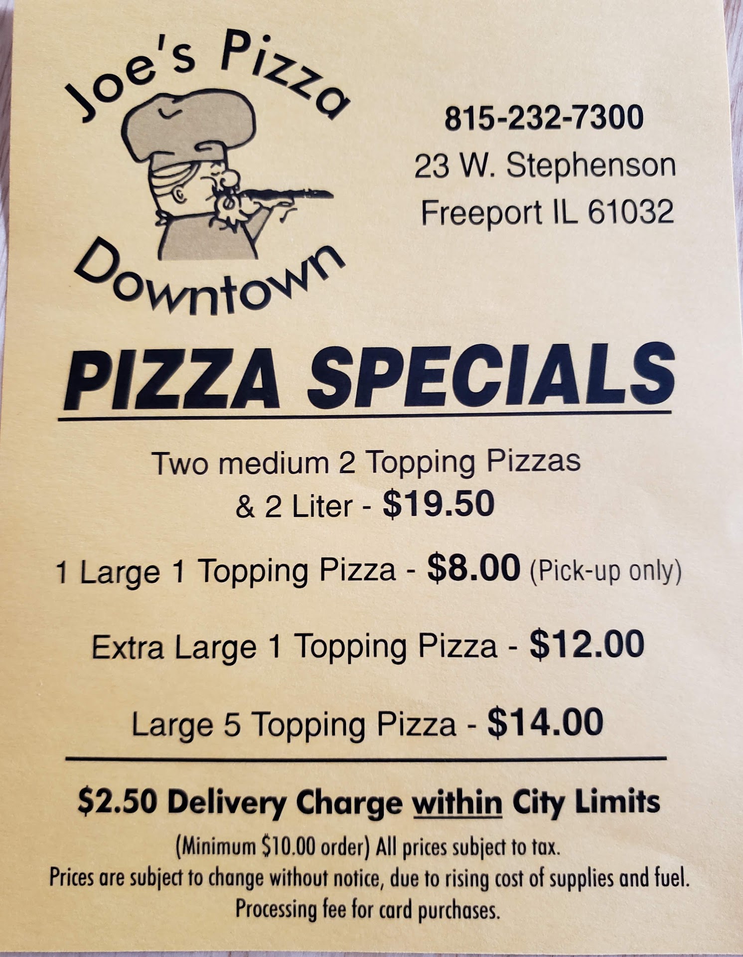 Although I have yet to receive my food although I was given an hour and 40 minute delivery time I do believe and some of the reviews that say that Joe's Pizza has gone downhill understandably they have been in business for many years done their dues to me it's unknown why they let things go downhill but as long as they're open I will continue to order a stromboli........ I had to edit it only because I was given an hour and 40 minutes delivery time okay it roughly was an hour and 40 minutes luckily I was outside when I see a delivery driver drive by mind you I called it 8:56 which was an hour and 15 minutes after I ordered reason being I ask them if they can give me a call when the driver left the facility they were only happy to say yes while I was on the porch I noticed the driver looking for an address I never received the call she then pulls over goes up to a house two doors down and knock on the door long story short I called Joe's Pizza told them what was going on she then said I'll call the driver all the time I'm flashing a flashlight as I see the driver get back on her vehicle not noticing me I hear the conversation between the two of them she then calls me from her cell phone and I explain to her where I'm at and what was going on she walks down and starts complaining about lighting situation not being able to find the address all the while they would have called it might have made things simpler but they fail to call when requested and it made it feel like it was my fault because I could have a light on my porch where...