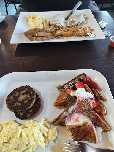 Read moreFound this little place when we stayed at the Motel 6 (would not recommend this motel btw), but the cafe was great. We stopped for breakfast. It's tiny, but the food is big! The servers are quiet but very friendly and kind! Prices were great. They ranged from about $6-$15 per person depending on what you ordered. Everything we got was delicious, except my teen did not enjoy the waffle, she said it was hard and she should have got the pancakes. The rest of the food was amazing! Very delicious and large portions. The salsa was so good, definitely homemade! Biscuits and gravy were excellent! Chicken fried steak was real, not frozen, and on point! The drinks were served ICE cold in these large, adorable mason jars. When we left they were setting up for their lunch buffet which looked so good! Don't miss out...